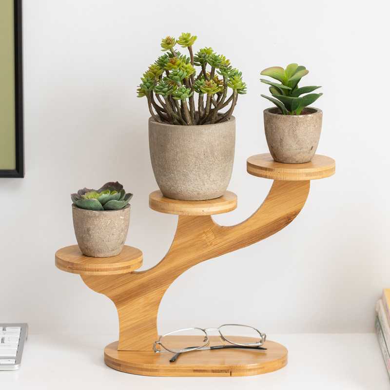 桌面多层小花架绿萝多肉花盆栽阳台客厅办公桌上迷你花盆架子竹木