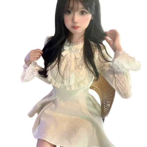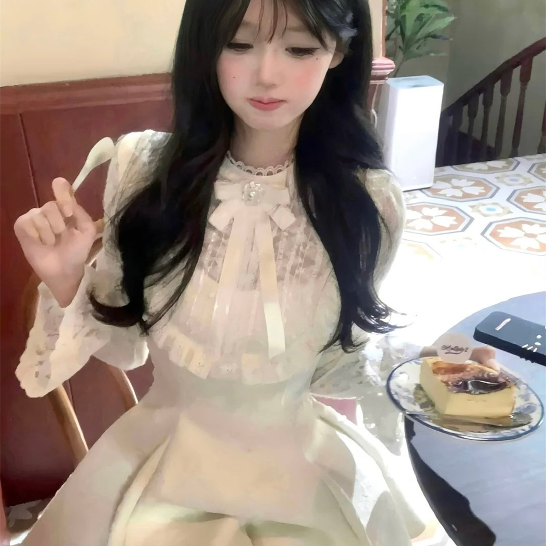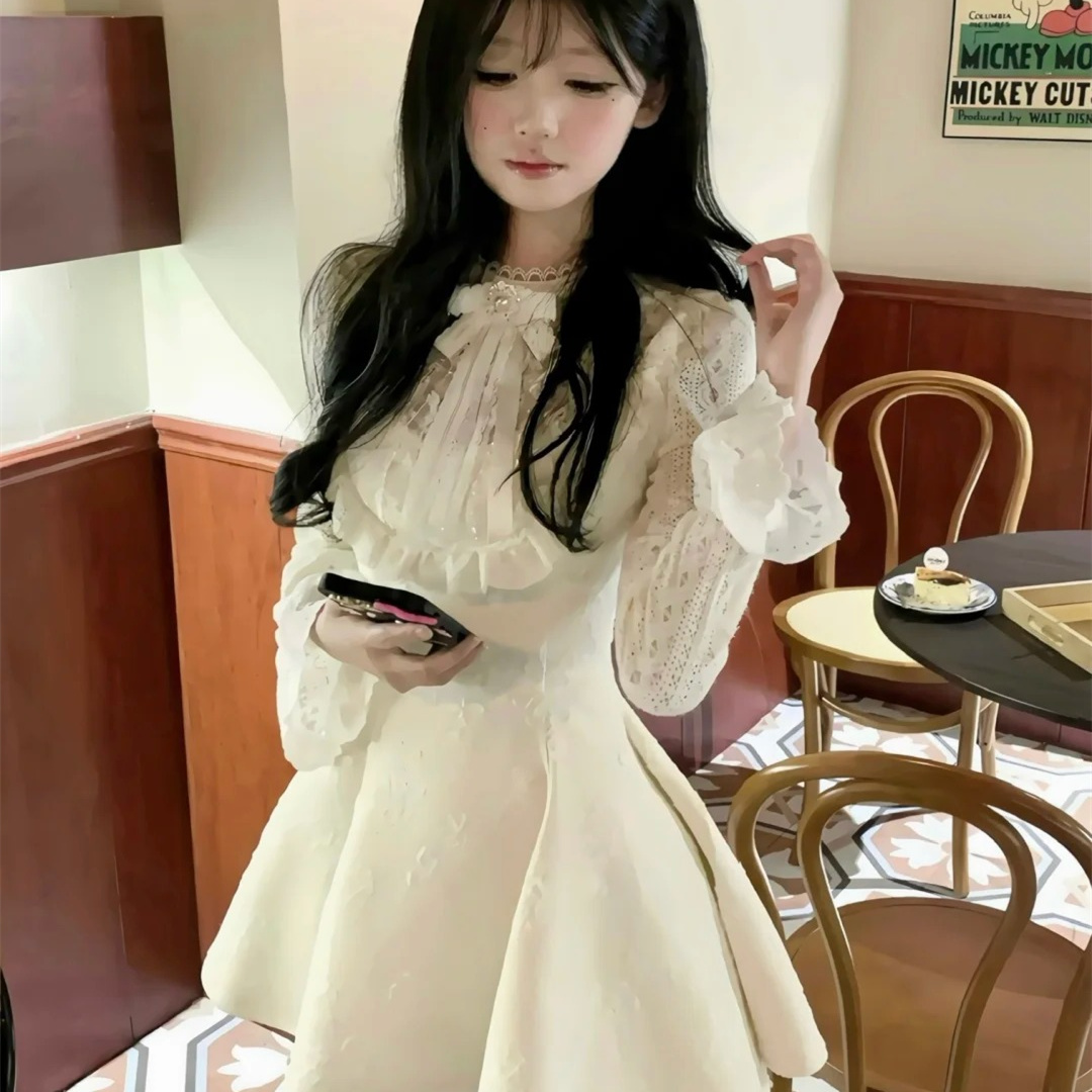 甜辣妹富家千金小香风连衣裙女入冬高级感拼接蕾丝公主裙收腰裙子