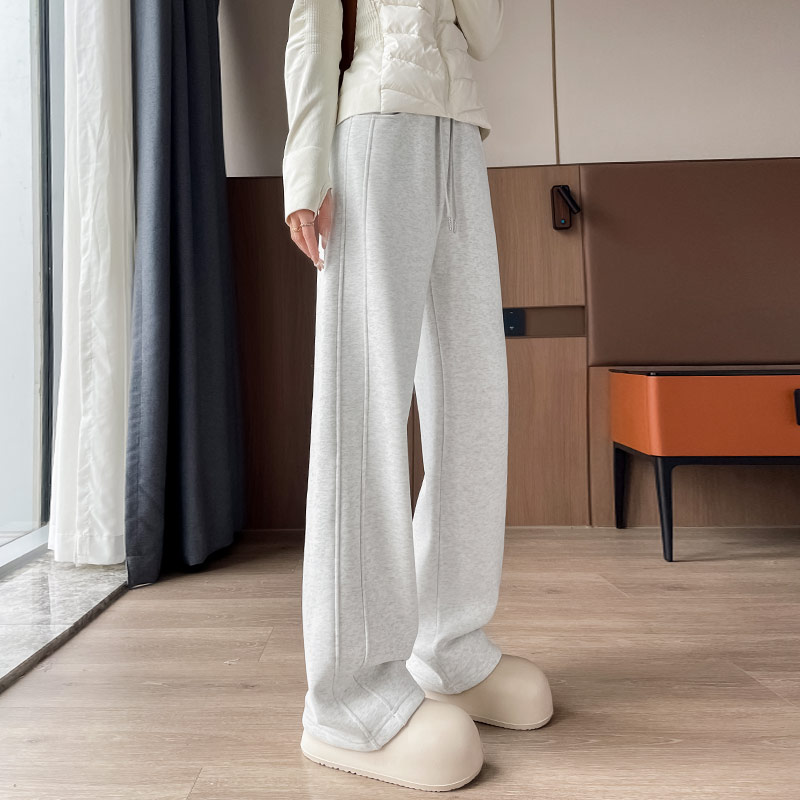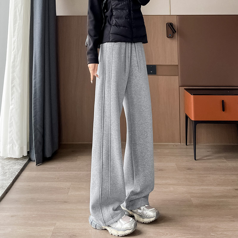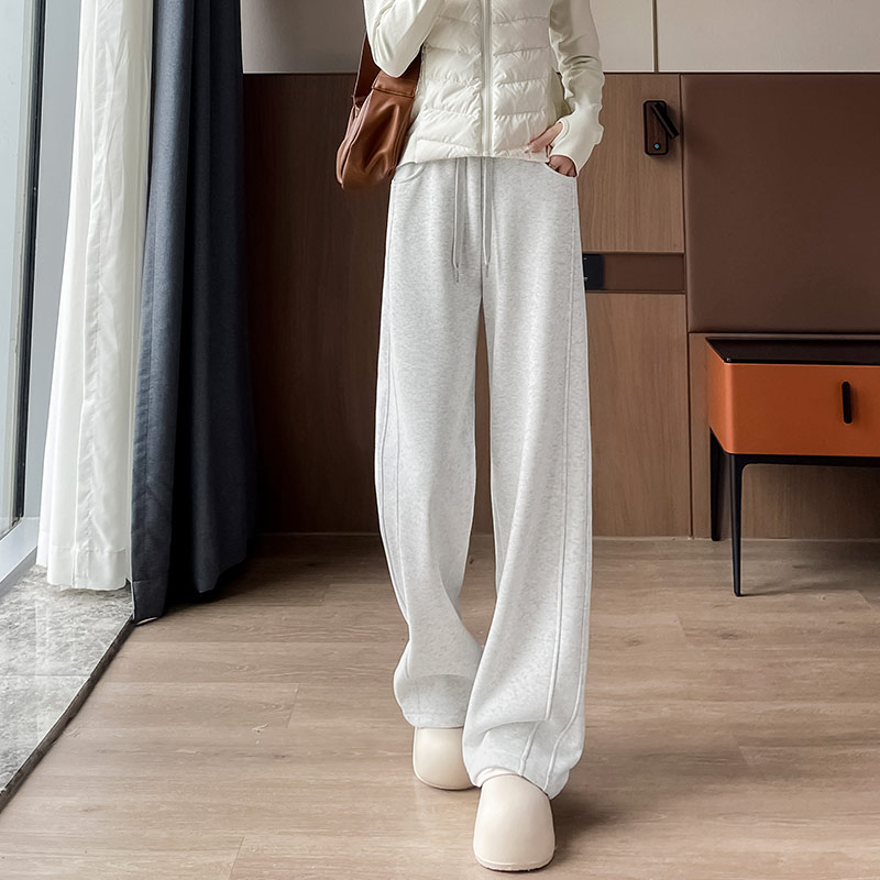 加绒运动裤女2024新款秋冬季直筒香蕉卫裤小个子窄版休闲阔腿裤子