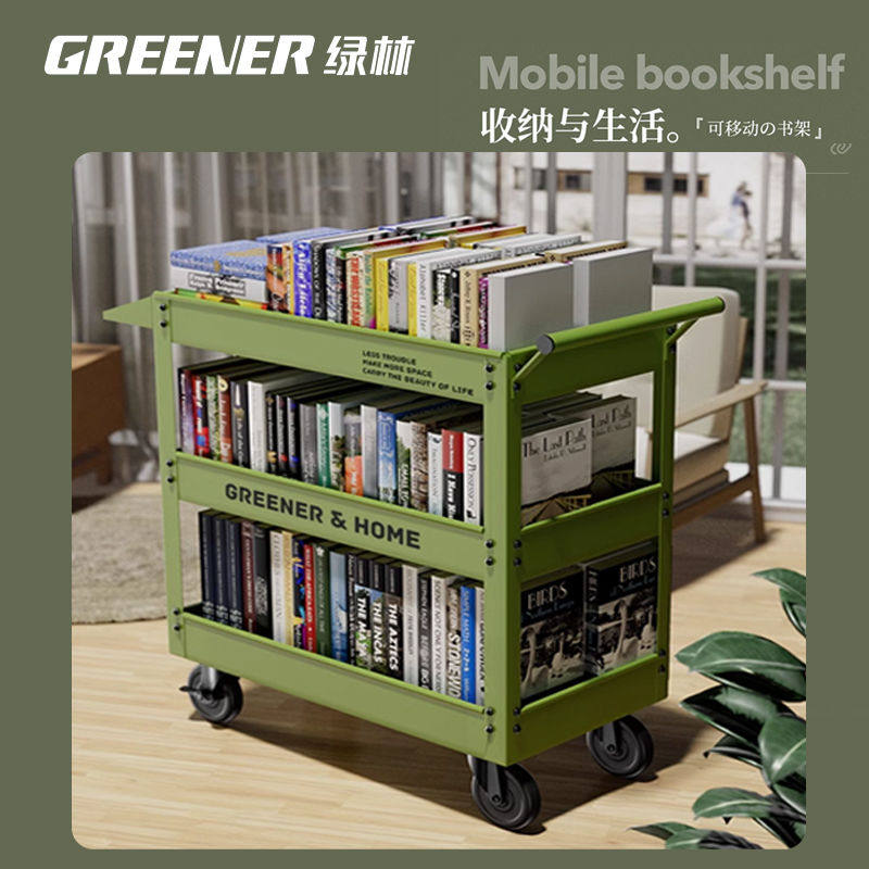 GREENER小推车书架落地置物架客厅家用分层架子书柜置物柜可移动