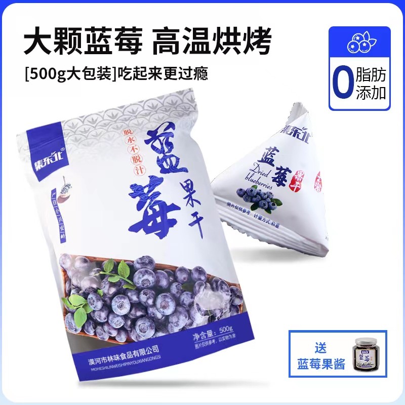集东北蓝莓干无糖精无添加小兴安岭野生东北蓝梅果干原味500g/袋