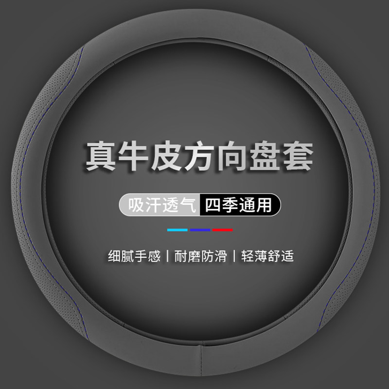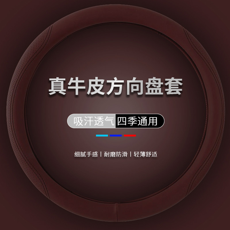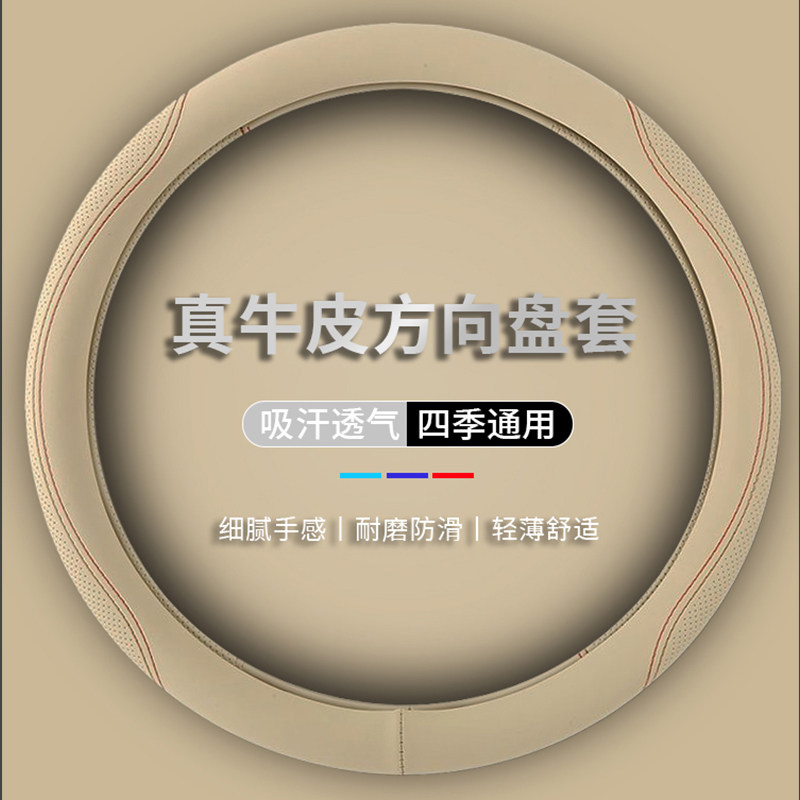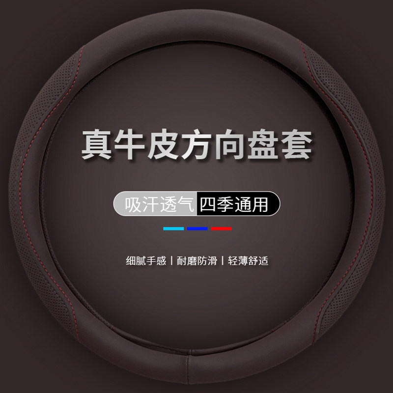 汽车真牛皮方向盘套四季通用型把套防滑吸汗透气简约款真皮D型