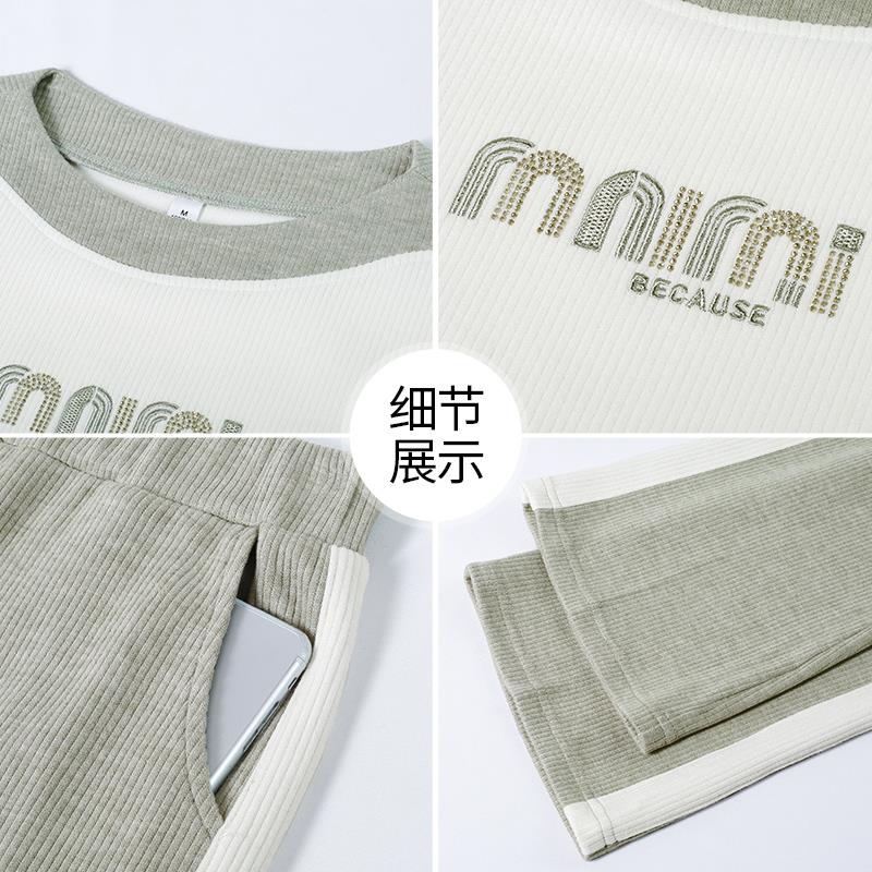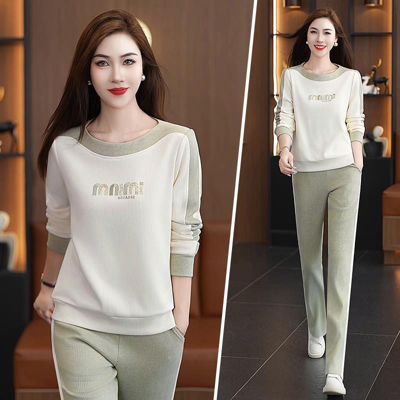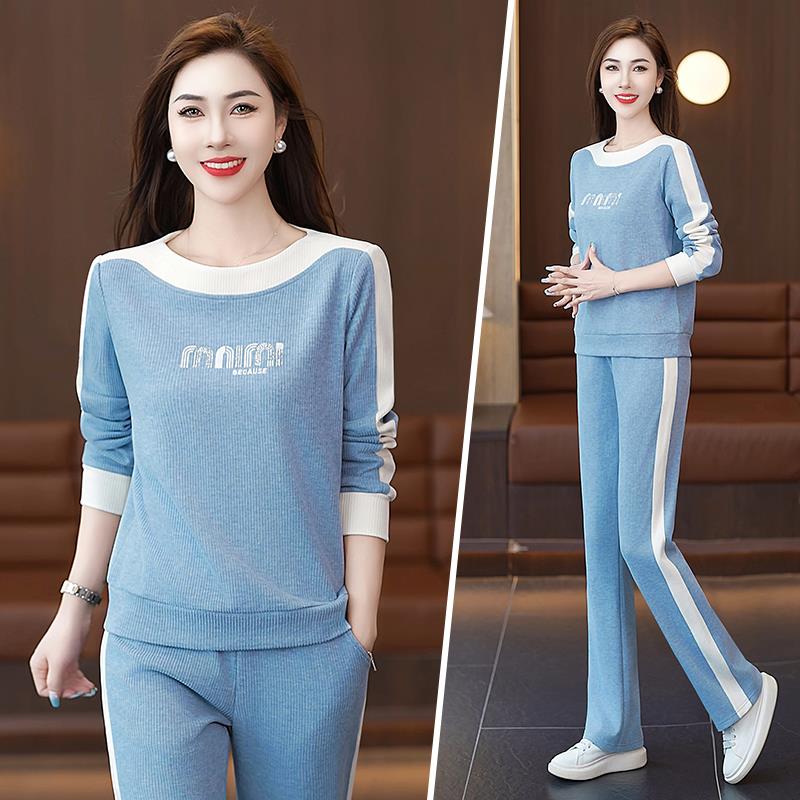 件坑绒8255288运动套装女春秋新款洋圆条气时尚中年妈妈领小个子