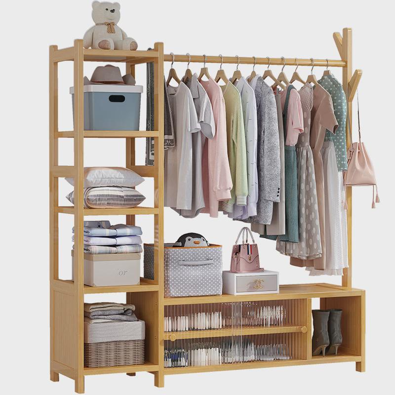 挂衣架落地卧室衣柜多功能挂架带储物柜鞋架鞋柜房间挂衣服的架子
