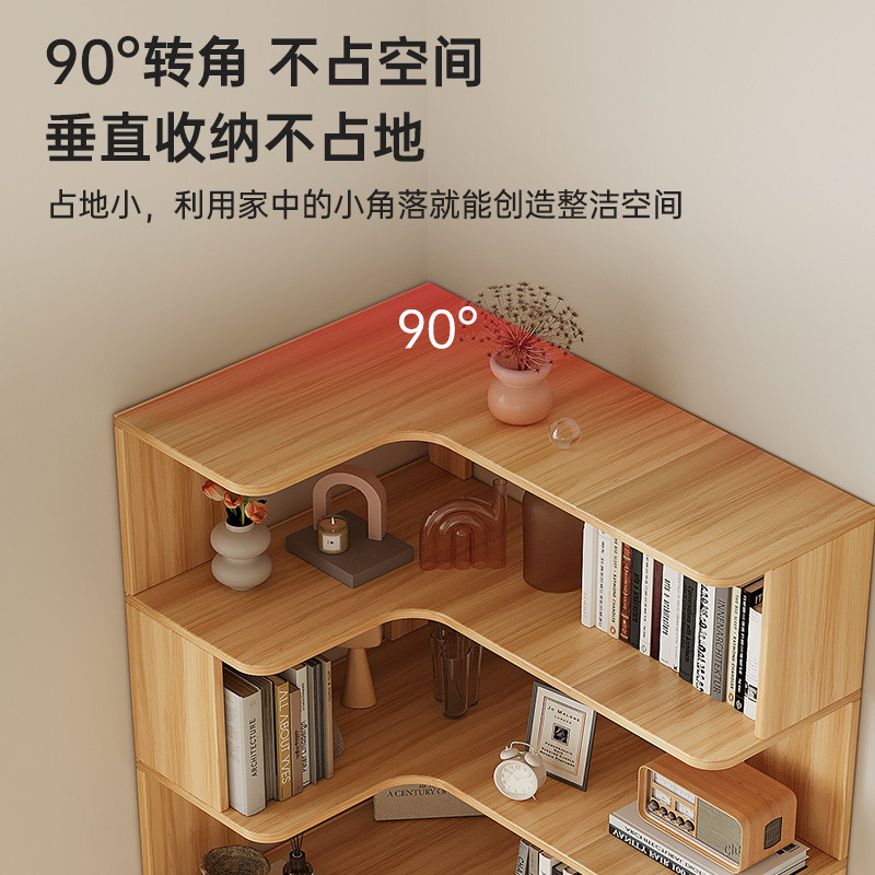 实木转角书架置物架落地学生家用角柜多层收纳置物柜网红简易