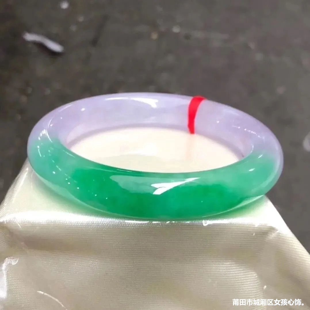 天然缅甸老坑翡翠春彩手镯女紫罗兰阳绿玉手镯飘花春带彩玉镯