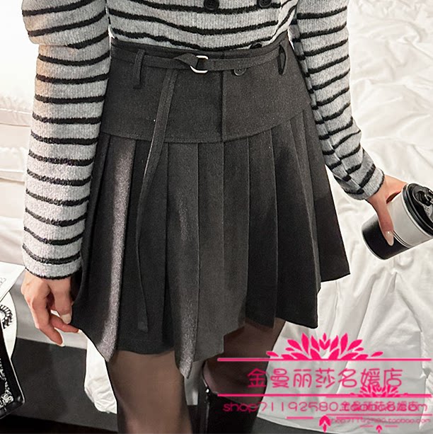 韩国官网正品代购2026年早春新款时尚腰带修身显瘦A字百褶半身裙