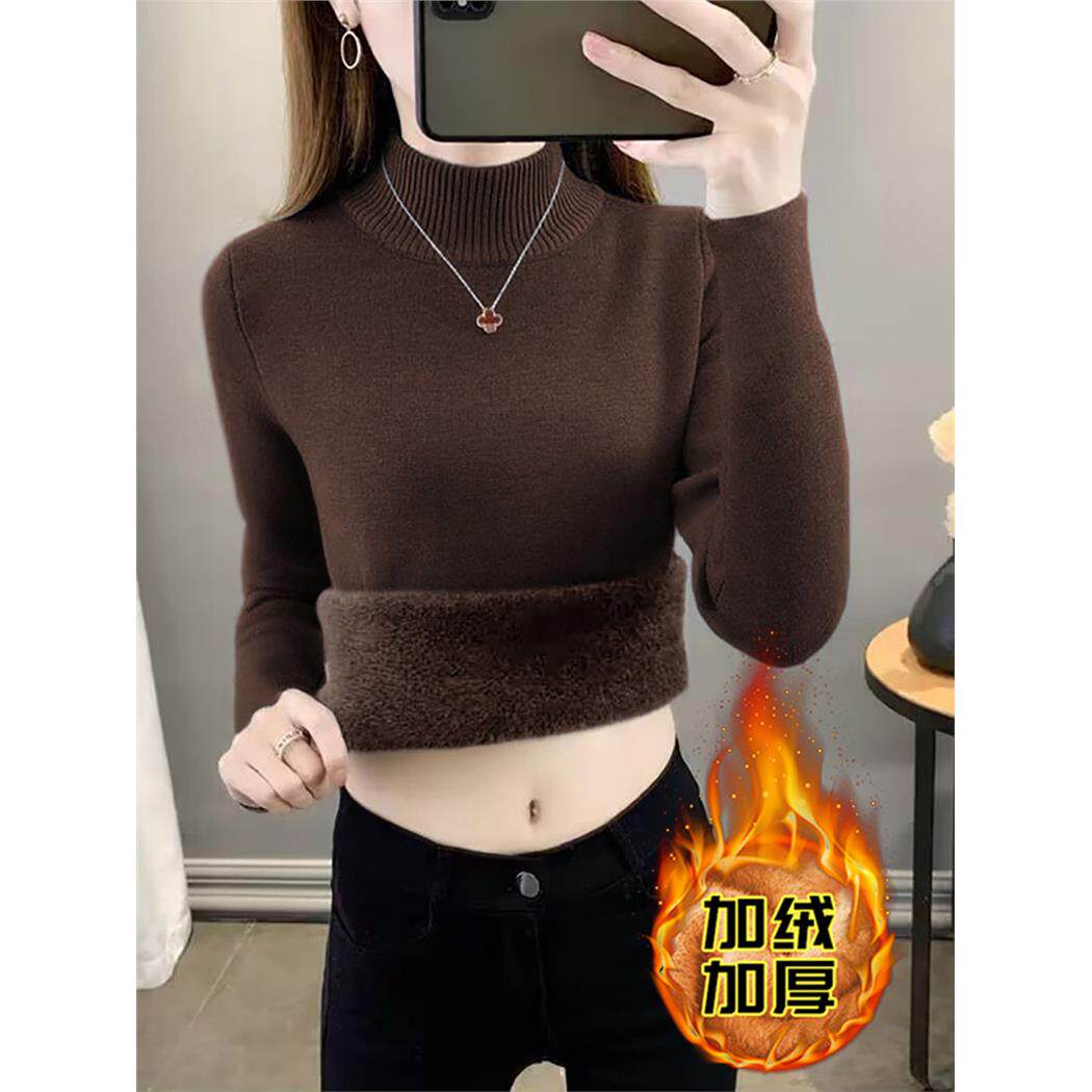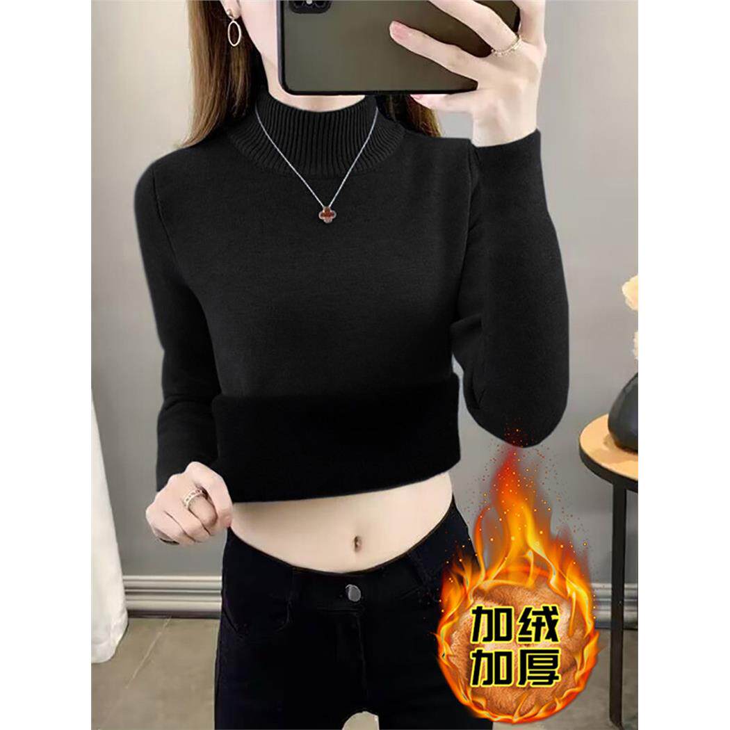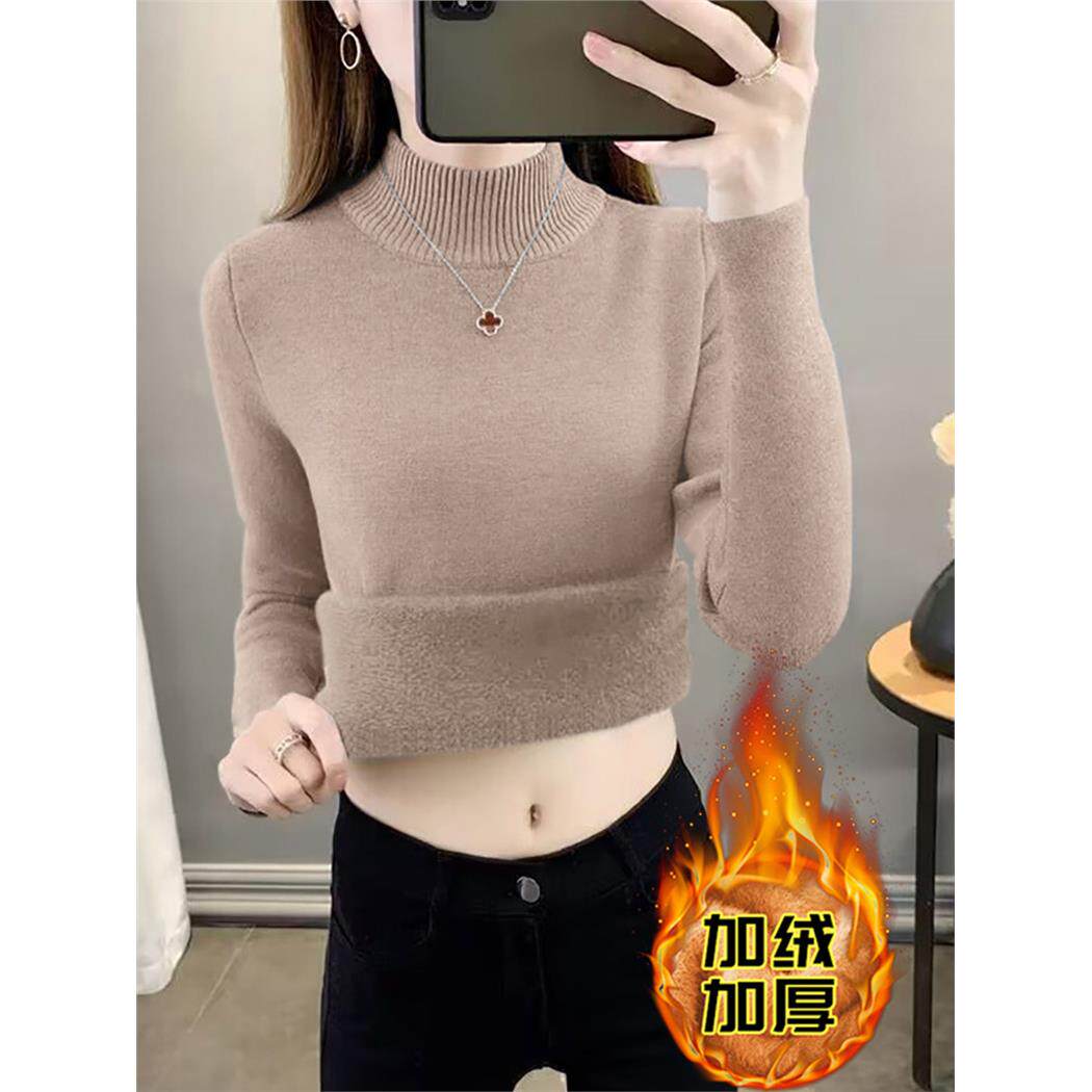 安可拉红水貂毛加绒加厚款内搭打底上衣半高领毛衣长袖针织衫女装