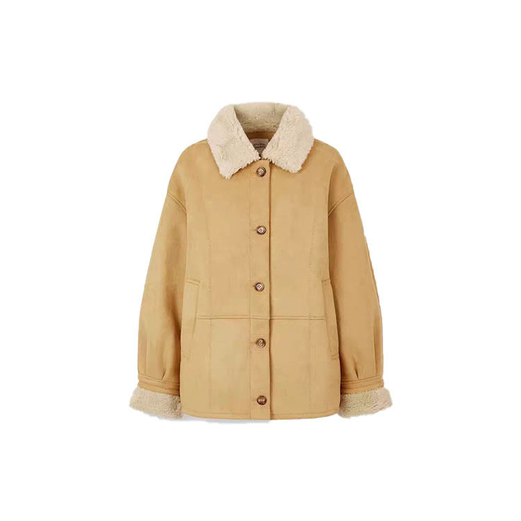 现货 2025冬季新韩国东大门复古羊羔毛翻领皮毛一体外套/半身裙女
