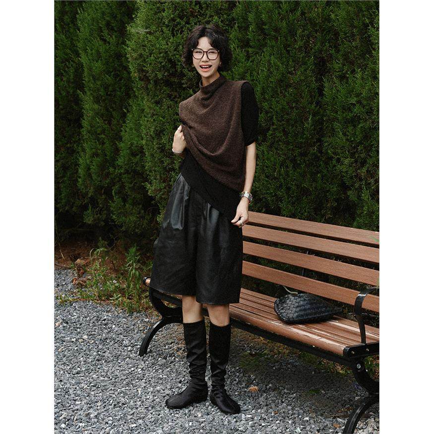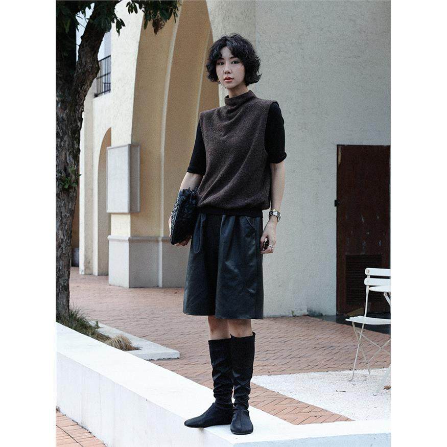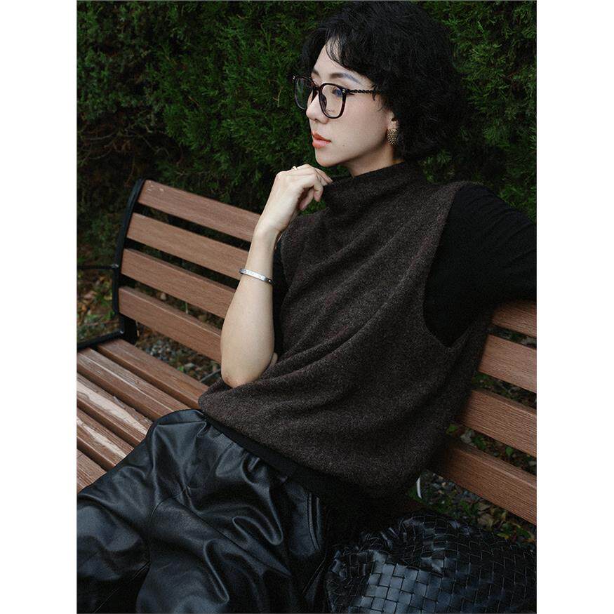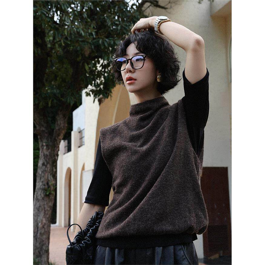 TT设计师【智性衣橱】简约风高领无袖针织马甲女早秋通勤马夹上衣