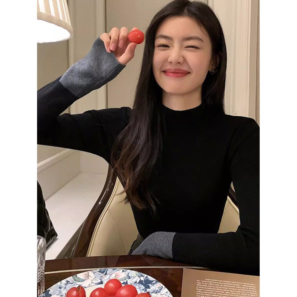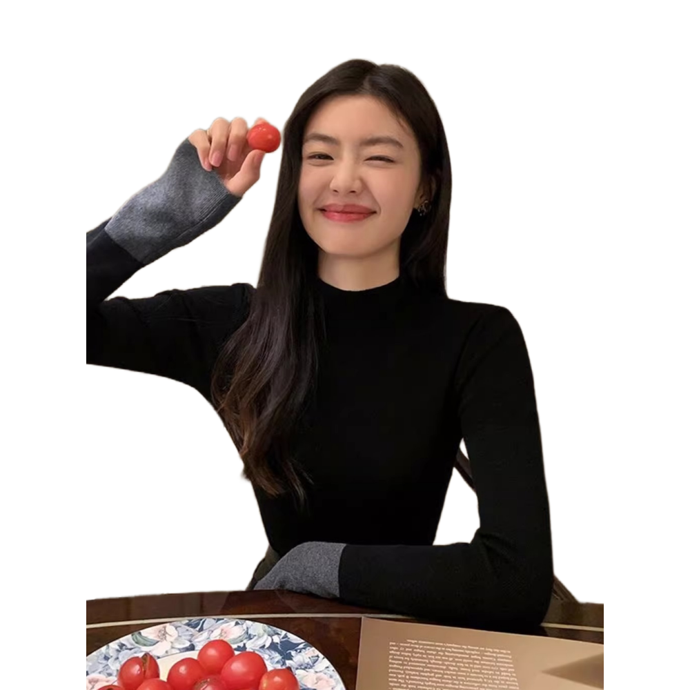 法式半高领针织毛衣女chic绝美撞色打底衫2025春季内搭高级感上衣
