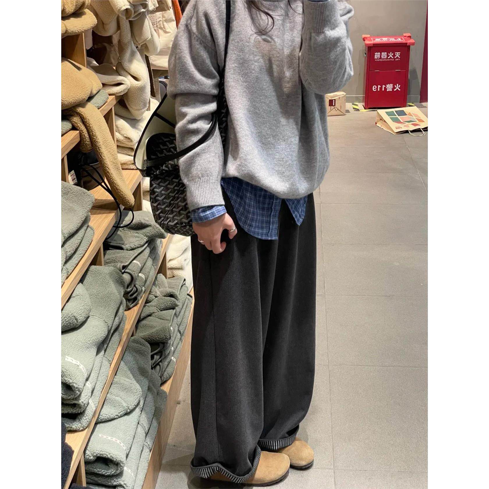 阔腿裤宽松慵懒风松弛感2025新款秋冬灰色裤子女款大码胖mm休闲裤