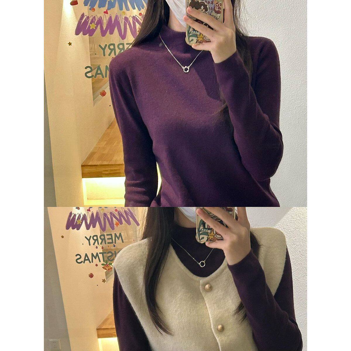 软绵绵手感半高领秋冬季针织打底衫女气质温柔纯色内搭套头毛衣