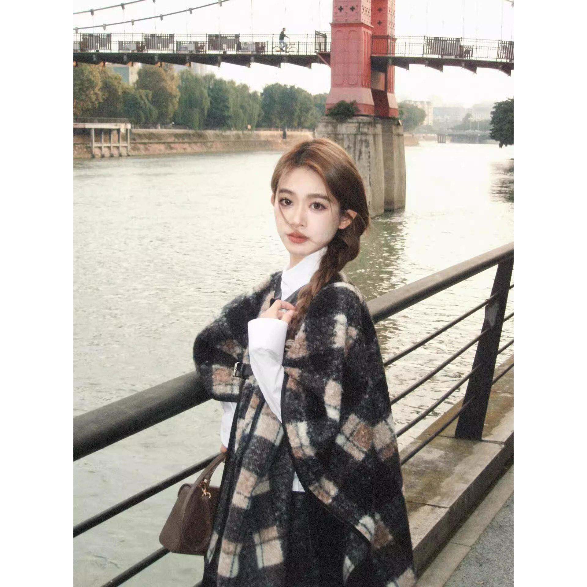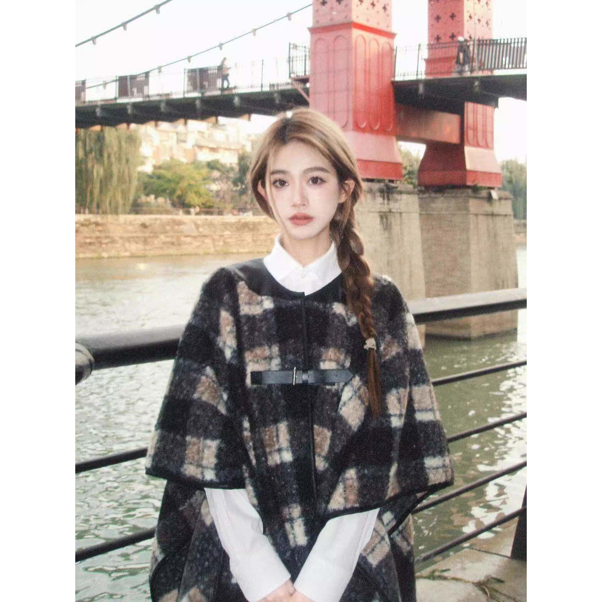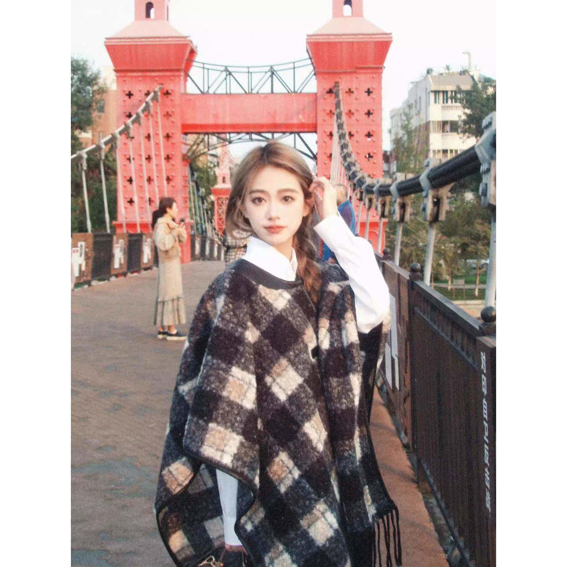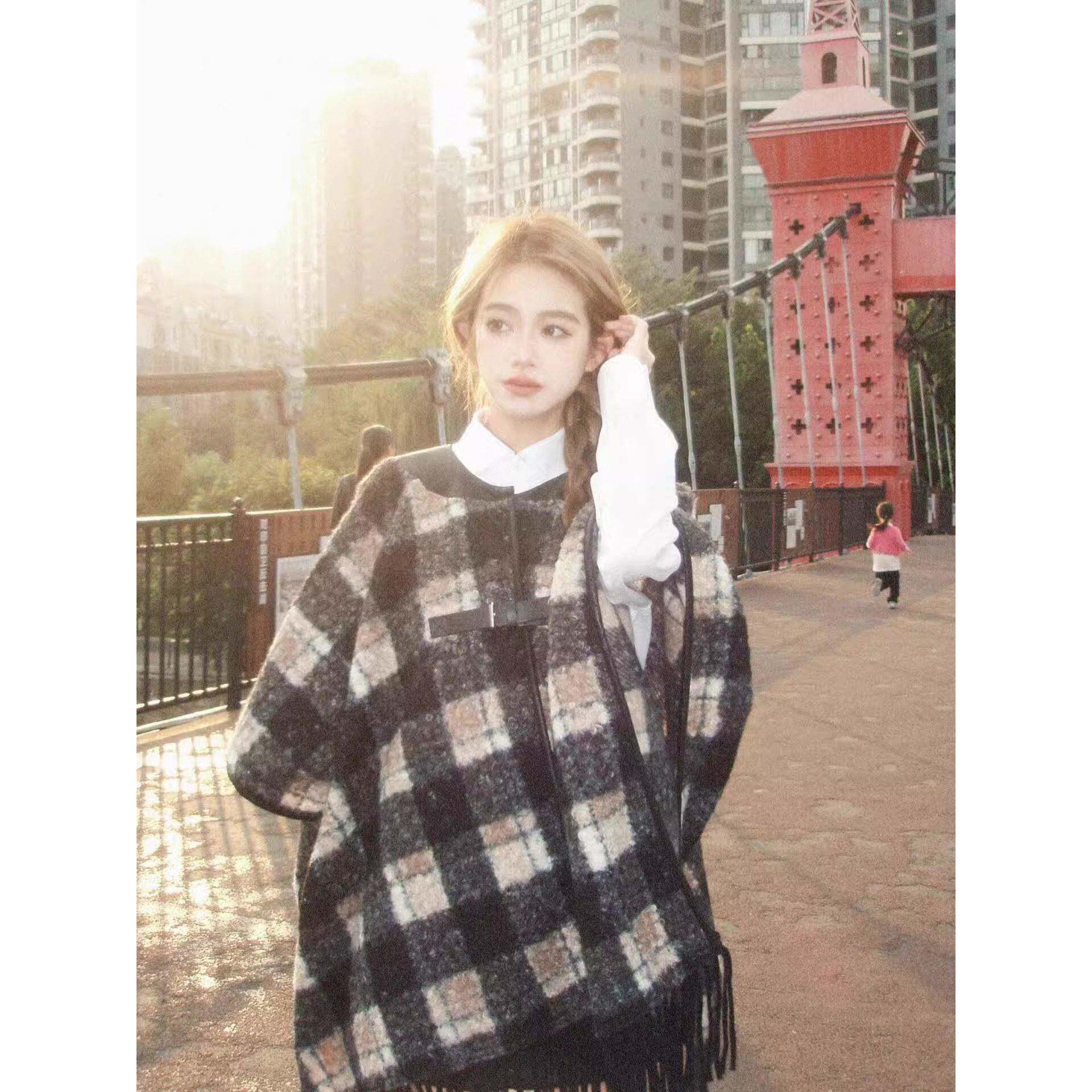 美拉外套德穿搭古设计感搭格复纹拼接斗篷流苏披肩针ITX织衫外女2