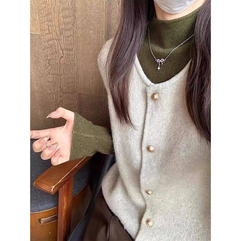 文艺复古清新薄荷绿超显白打底衫女内搭秋冬毛衣半高领针织衫上衣