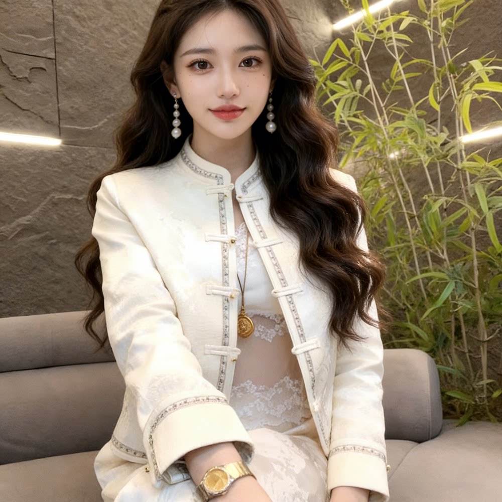 2026新款女春季外套短款新中式套装大码胖mm高档上衣阔腿裤两件套