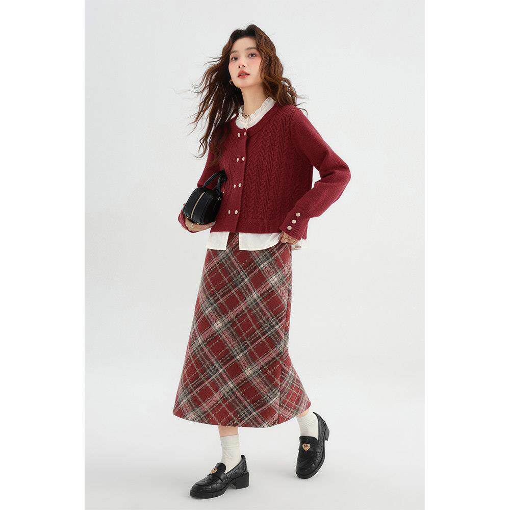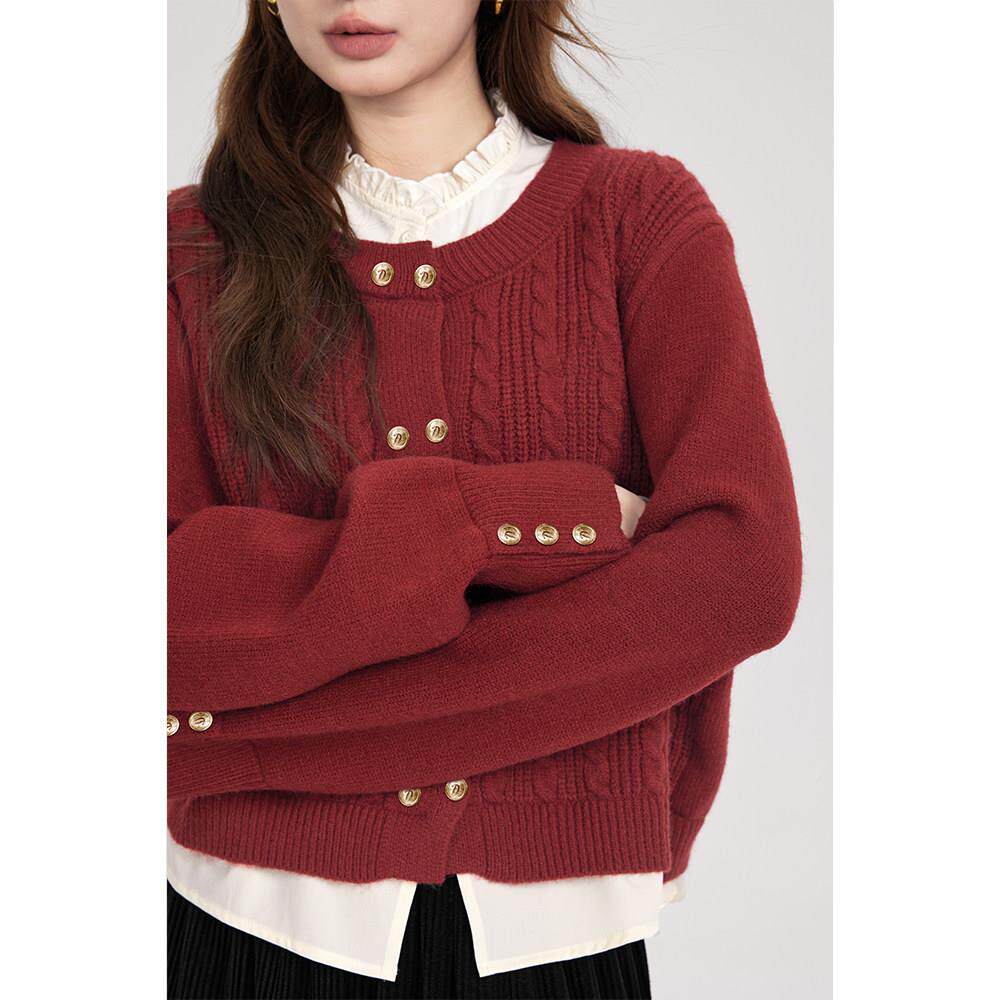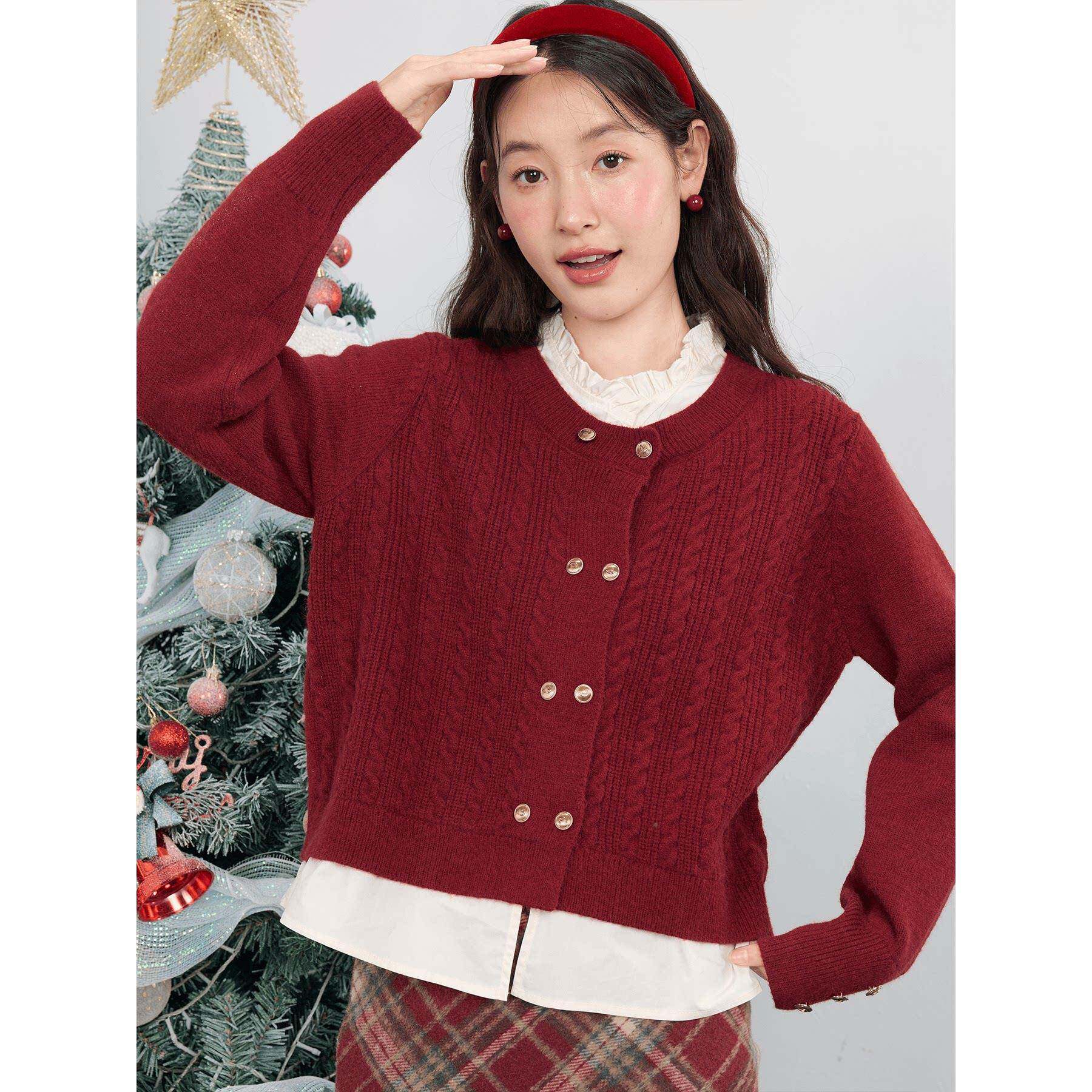 爱大蔷薇码新年穿搭红色GT71143毛打衣开衫女秋冬外针套胖mm底内