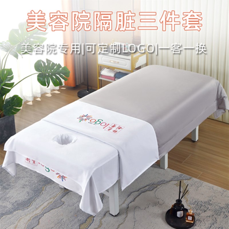 美容床单件带洞纯色按摩推拿床单美容院针织棉隔脏罩三件套