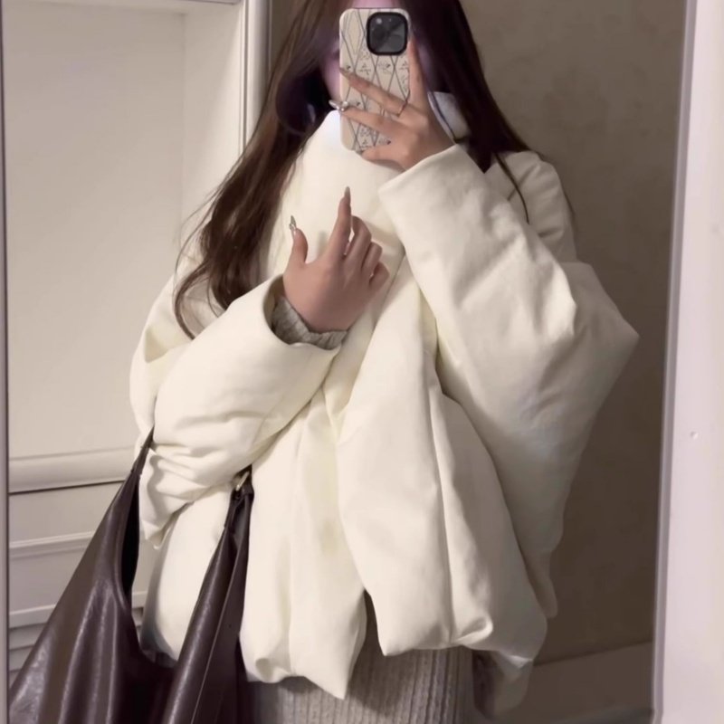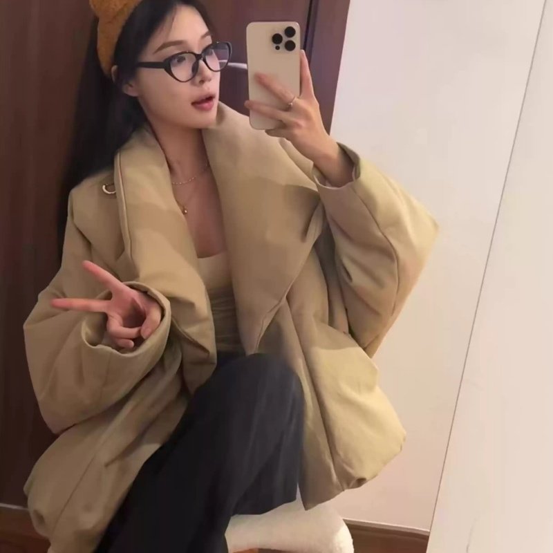 2025年冬季新款韩系短款棉服女大翻领设计感宽松面包服外套