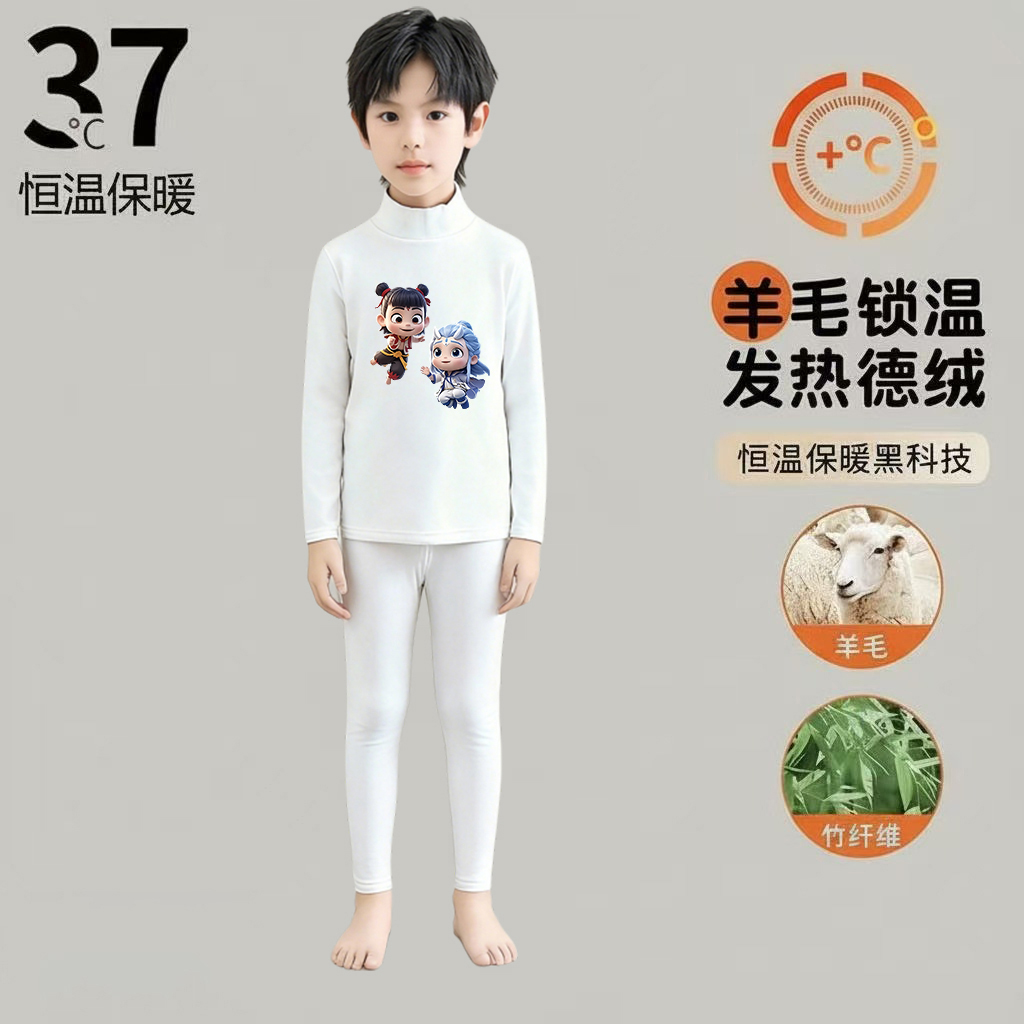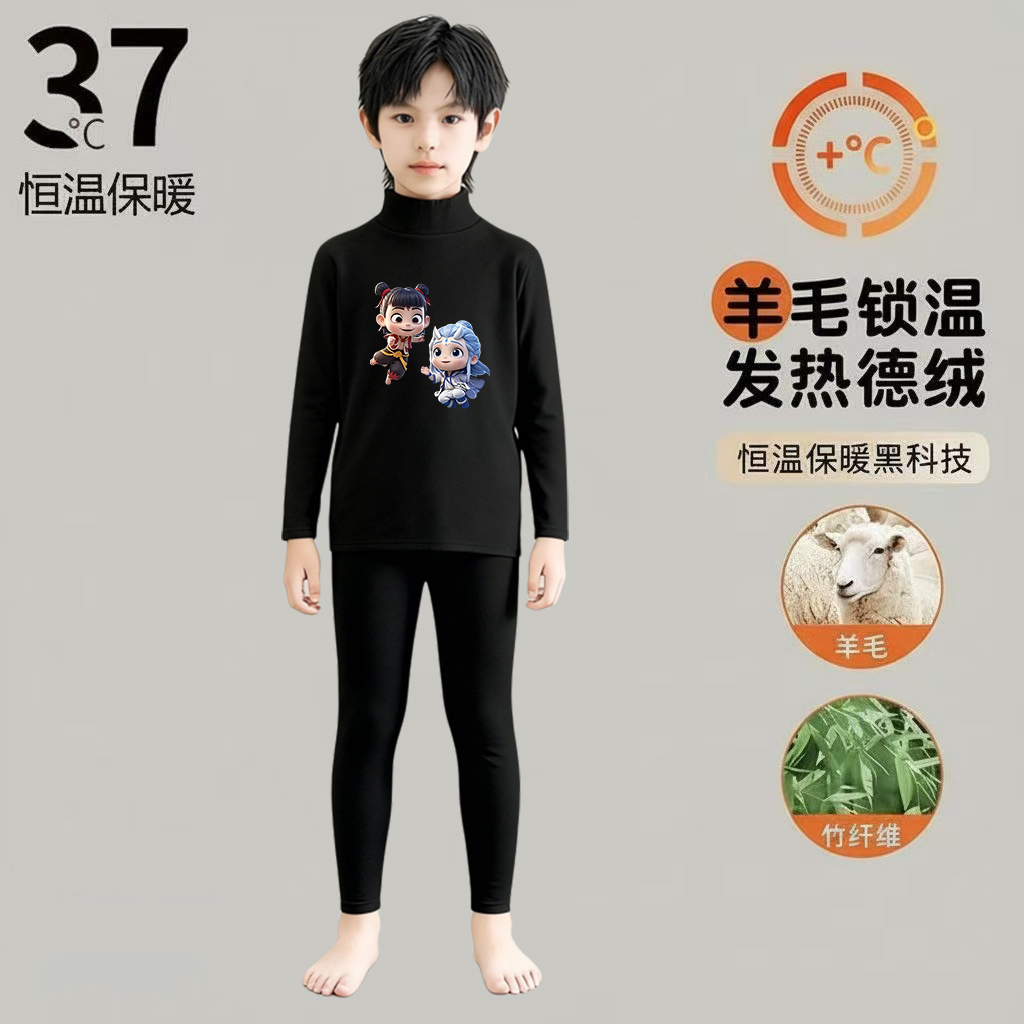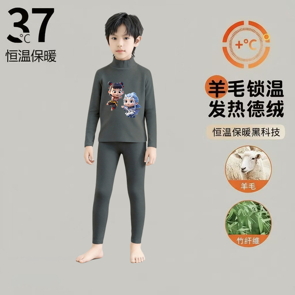 男童德绒保暖内衣套装冬季加厚卡通发热恒温秋衣秋裤