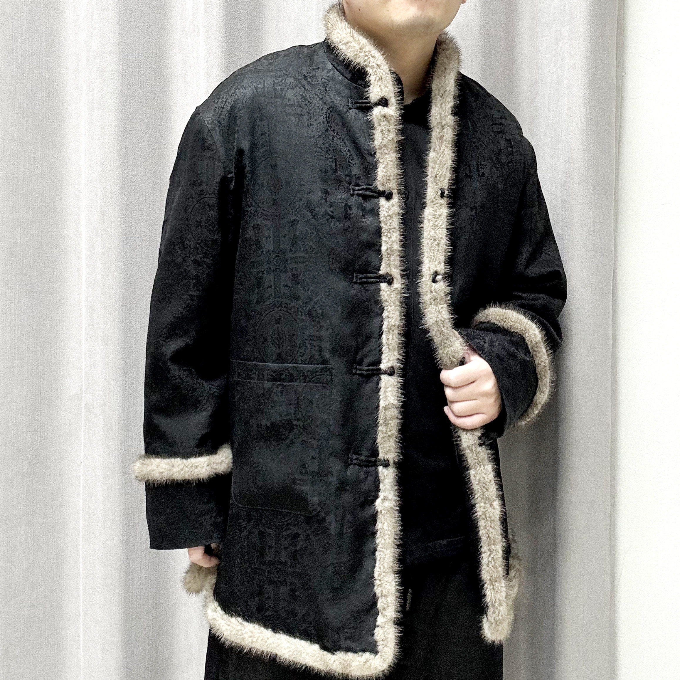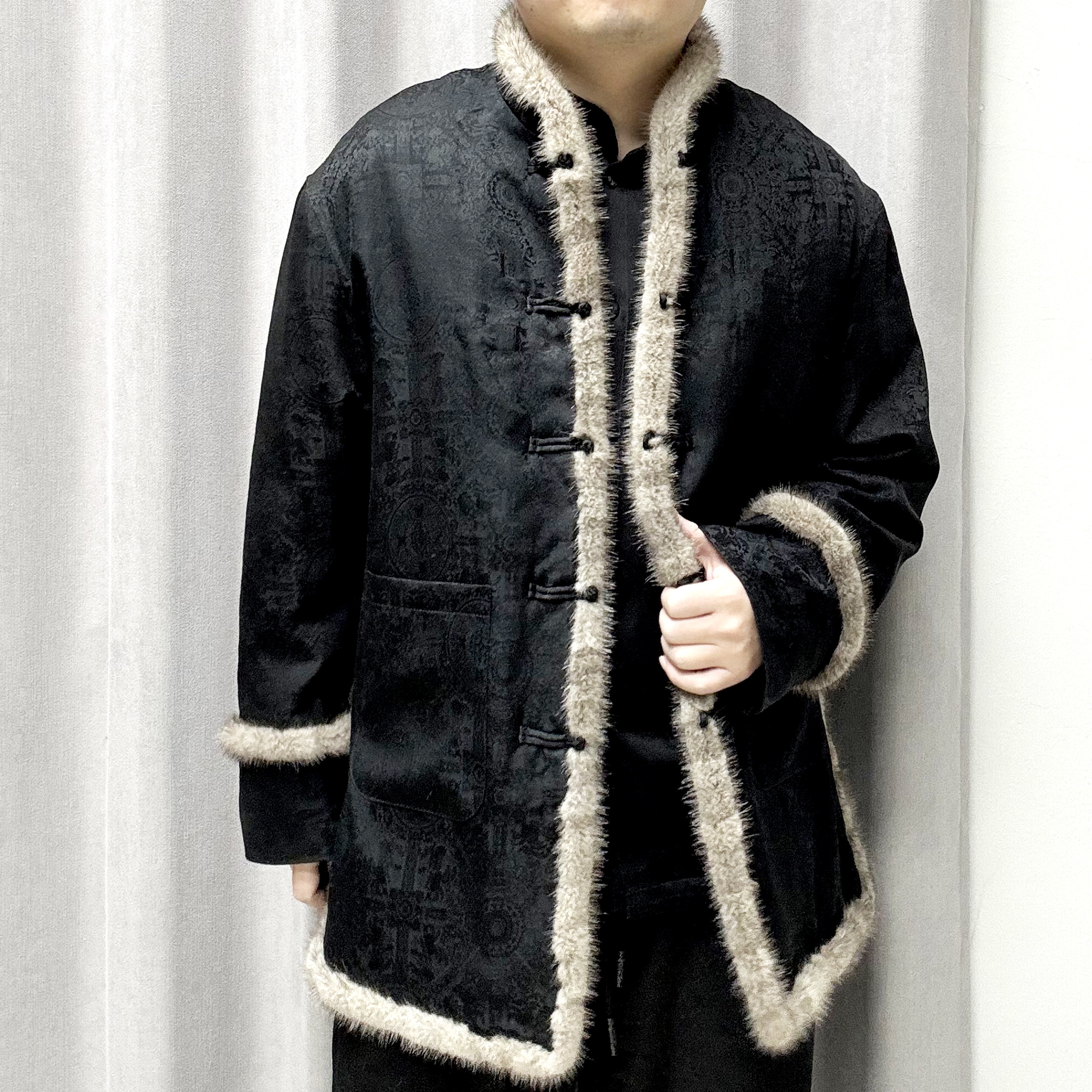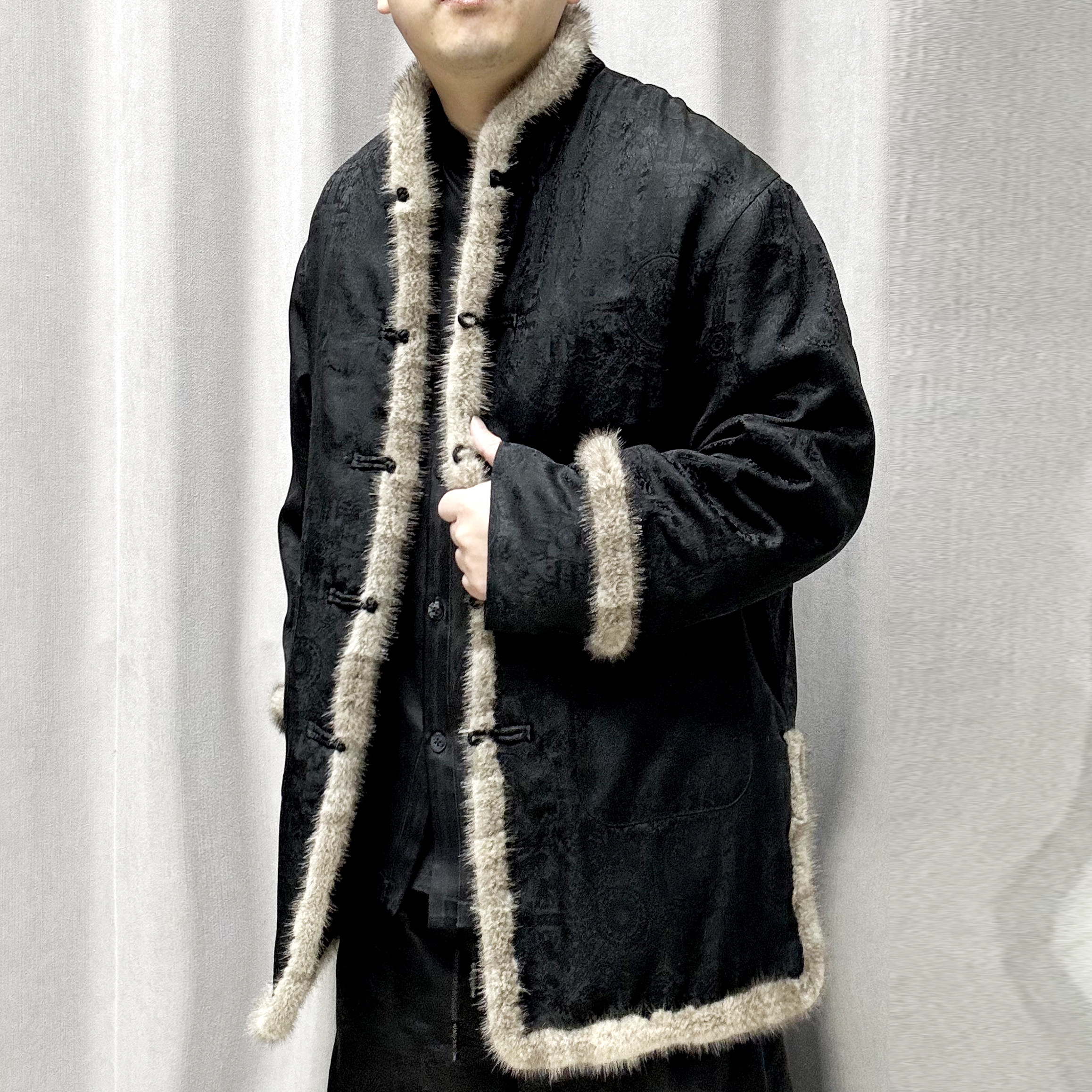 25151桑蚕丝香云纱男装外套中长款加绒加厚中国风秋冬冬季复古