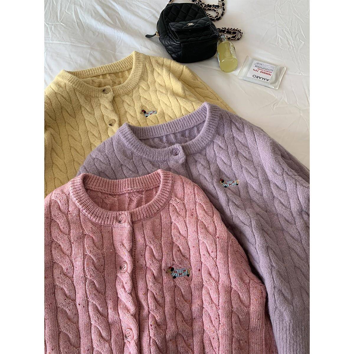 im向 乖乖女穿搭 腊肠狗刺绣羊毛麻花毛衣开衫外套女秋季针织衫