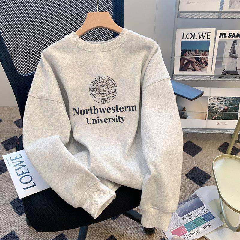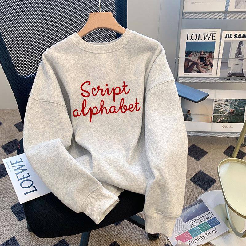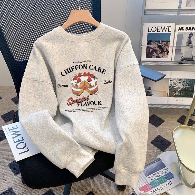 灰色卡通圆领卫衣女款秋季2025年新款爆款宽松大码小个子女装上衣