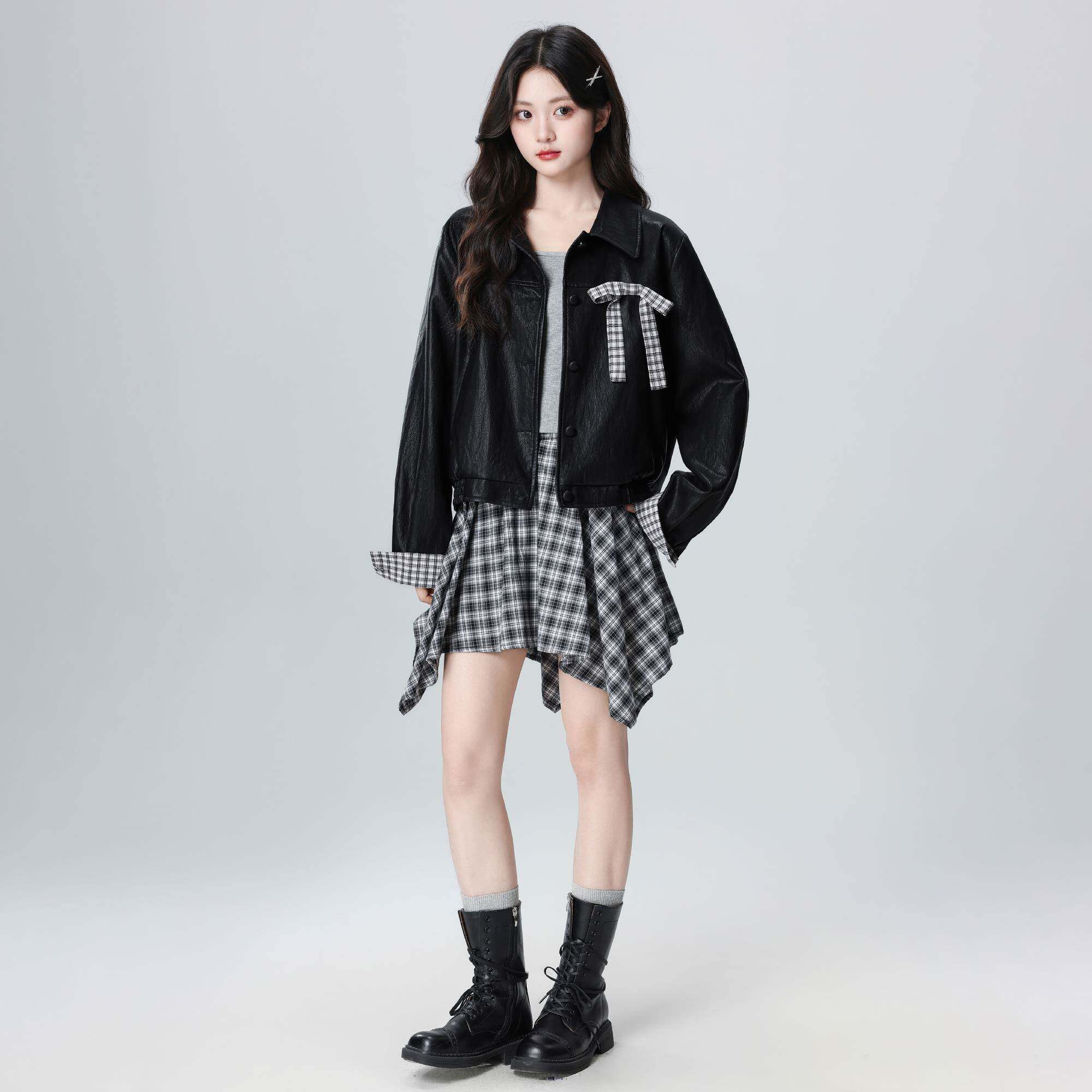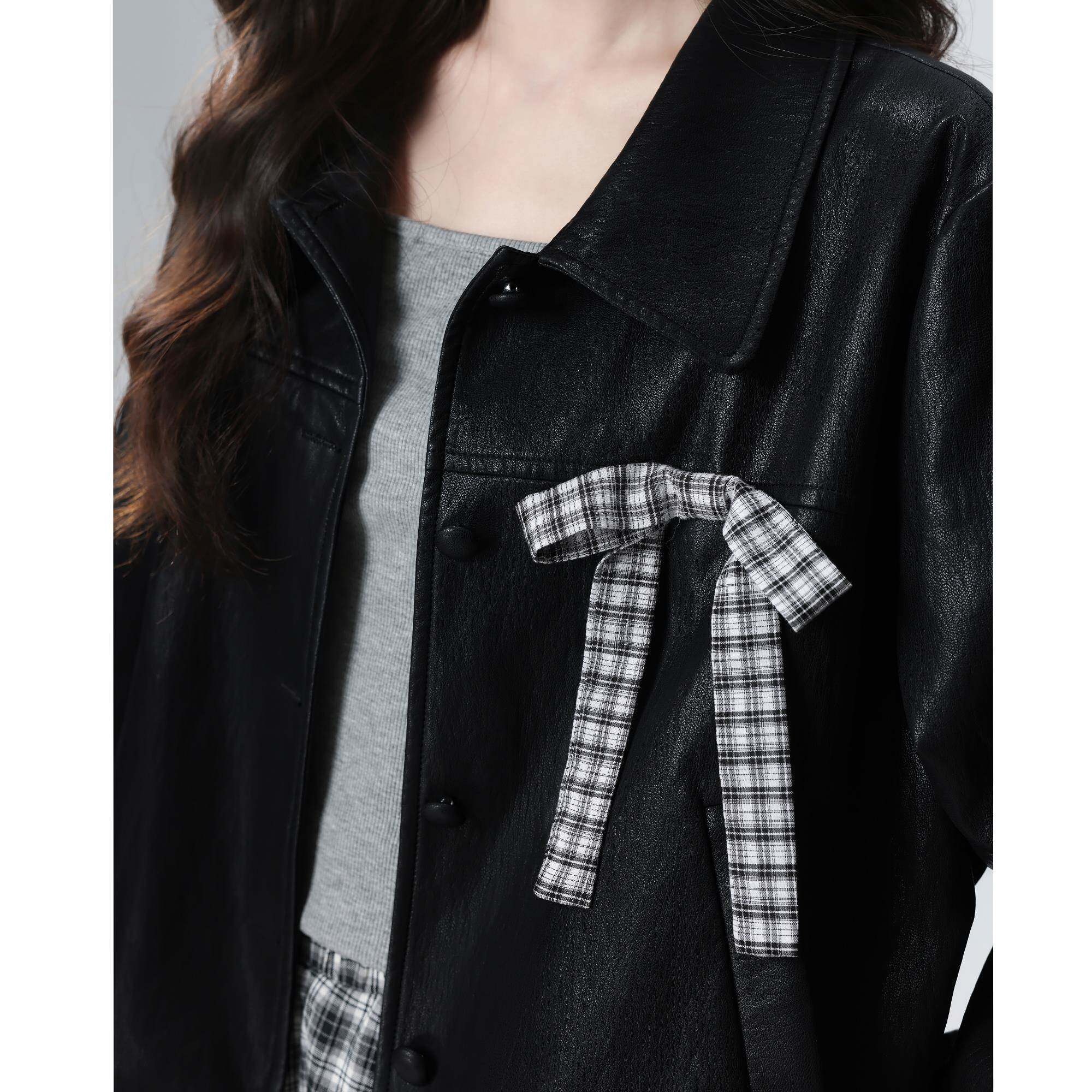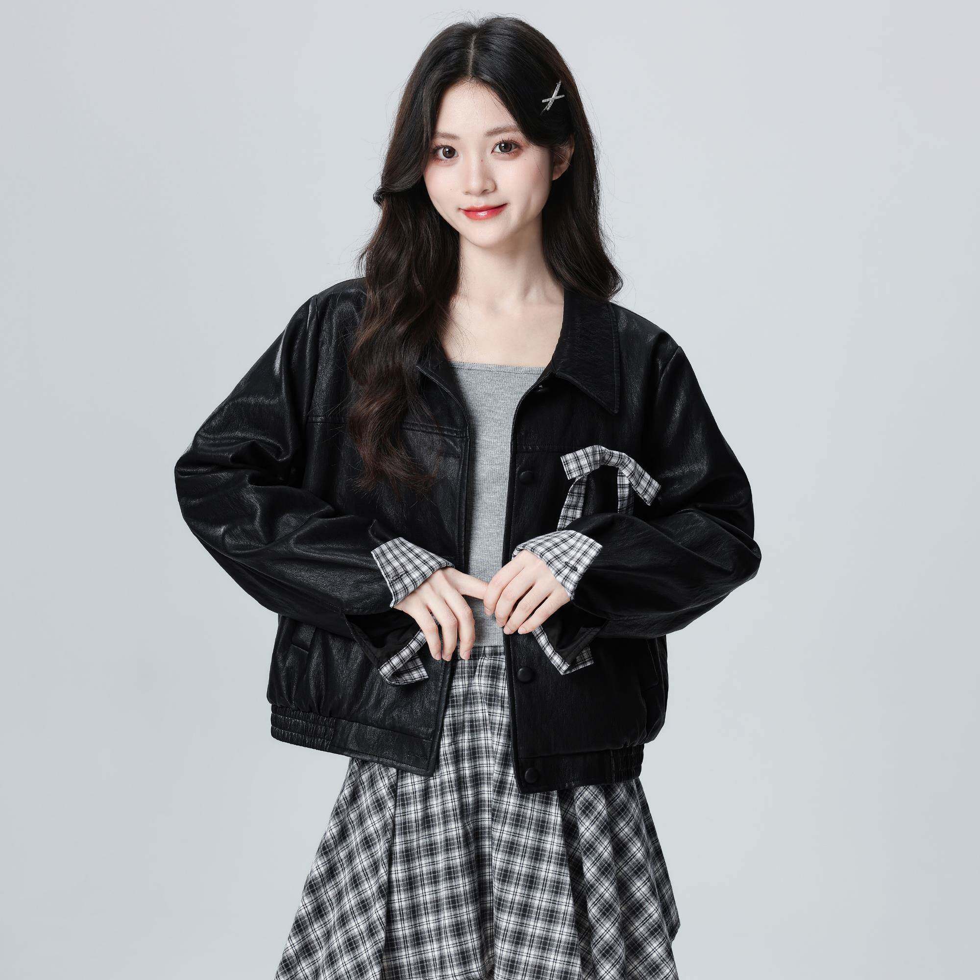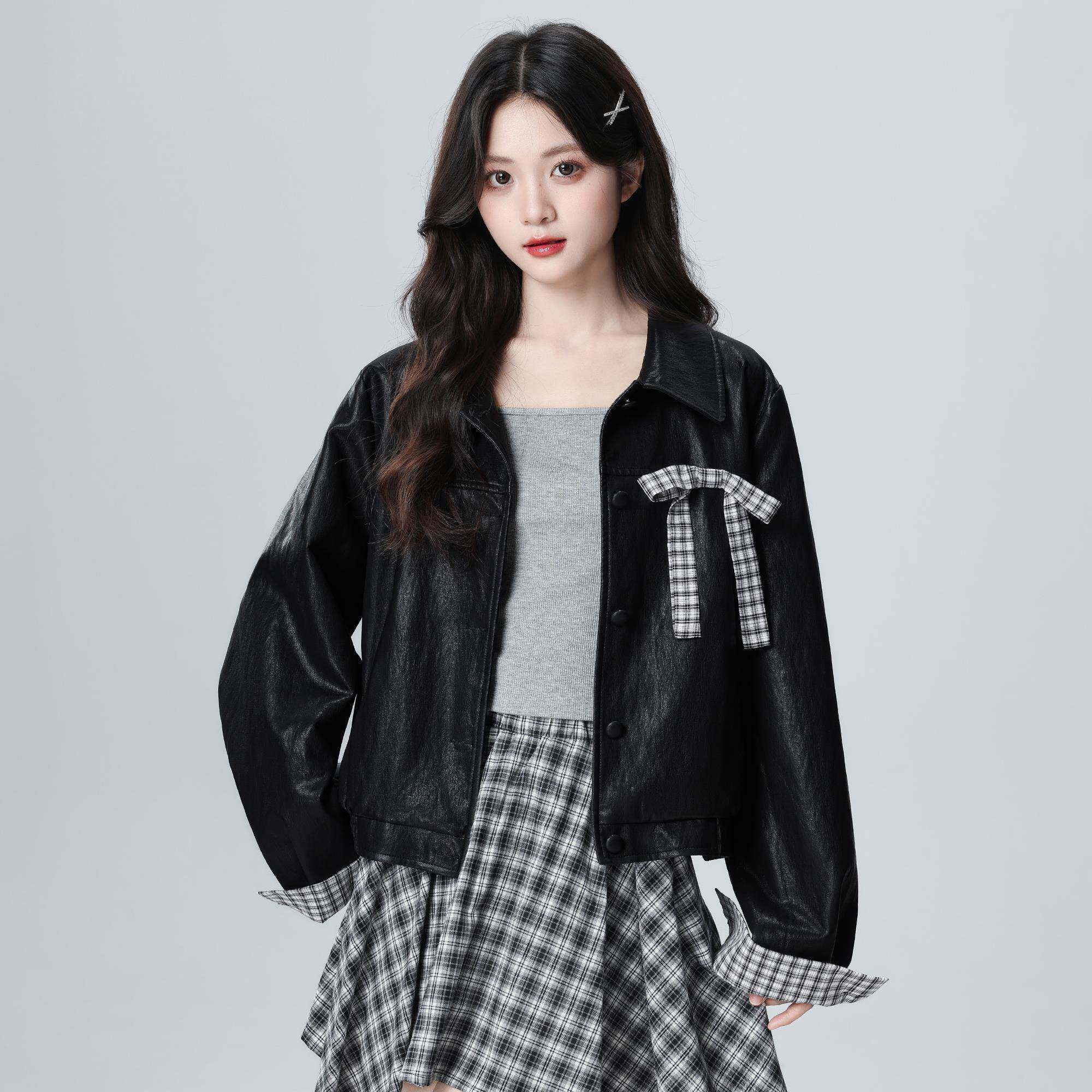 黑色复古翻领皮衣外套女秋冬2025秋新款PU皮机车夹克开衫短款上衣