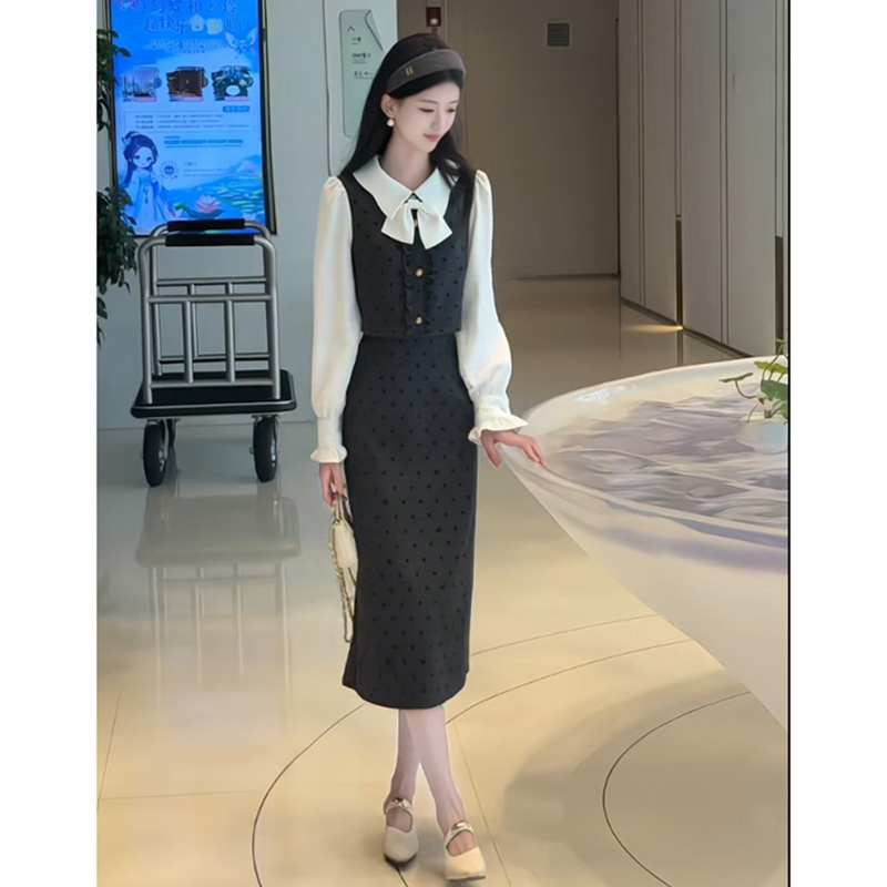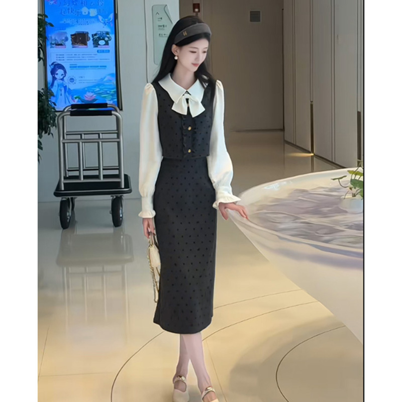 有里布连衣裙女2025秋季新款拼接高级感小个子假两件长裙QY0065