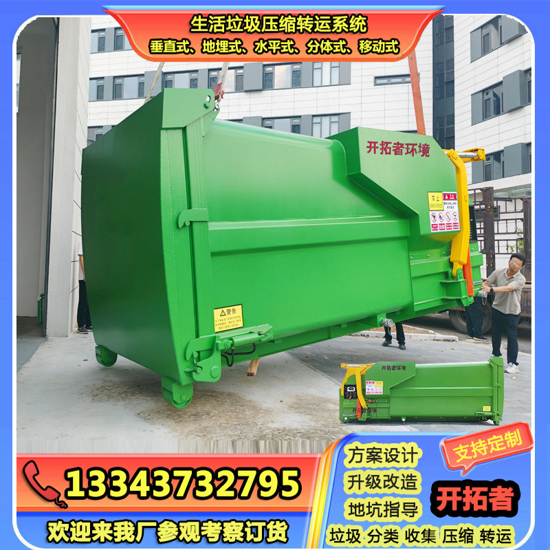 填埋场后翻斗垃圾压缩站 18立方上料斗装置移动式垃圾压缩设备