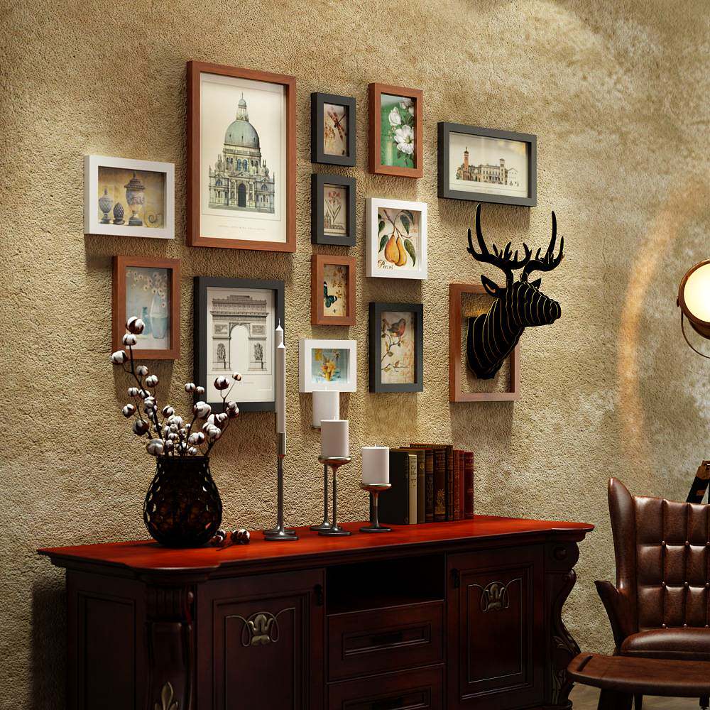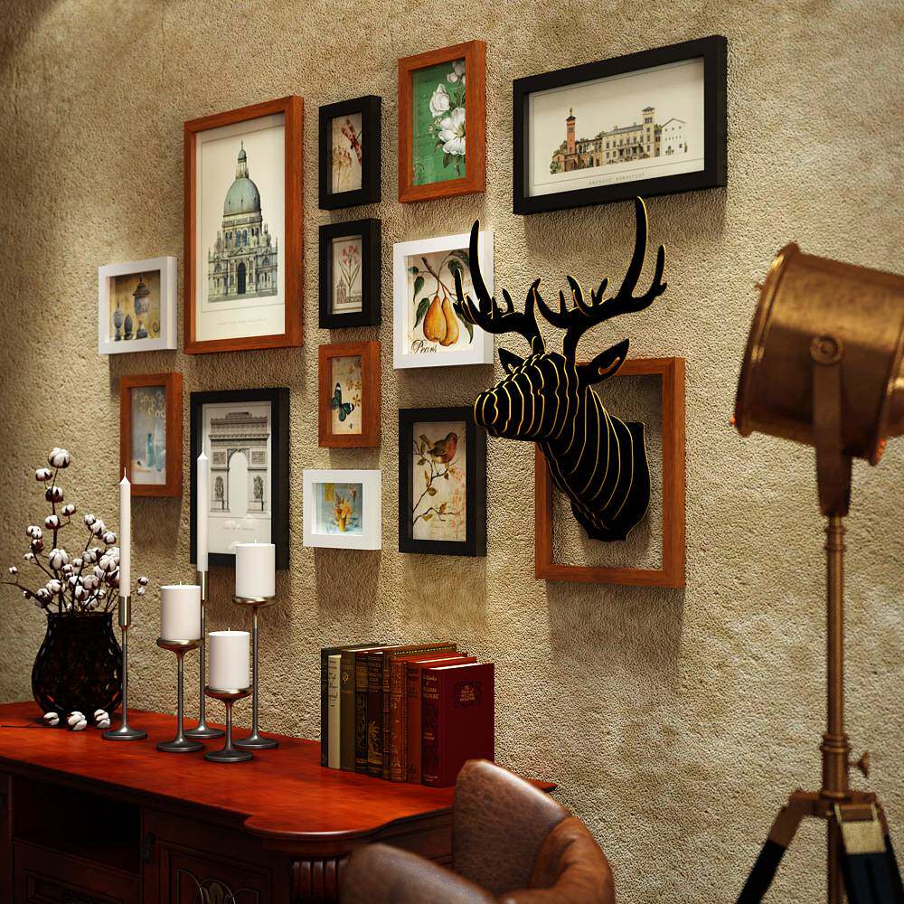 高分子_0231美式复古照片墙组合相框挂画创意鹿头装饰画背景墙挂