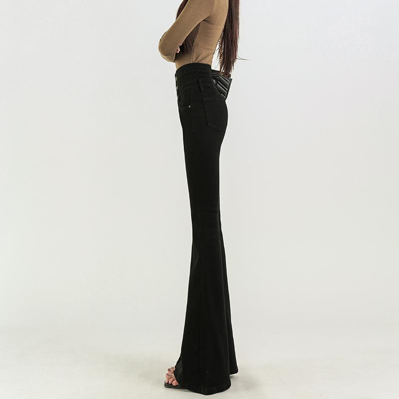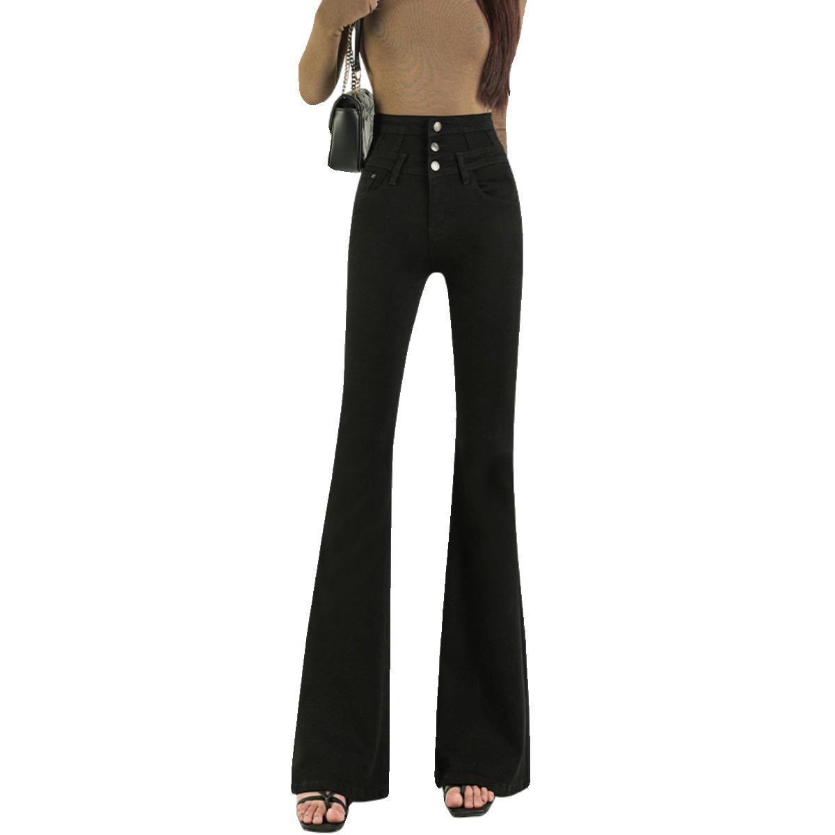 超高腰收腹黑色微喇牛仔裤女2025年夏季新款修身加长马蹄喇叭裤子