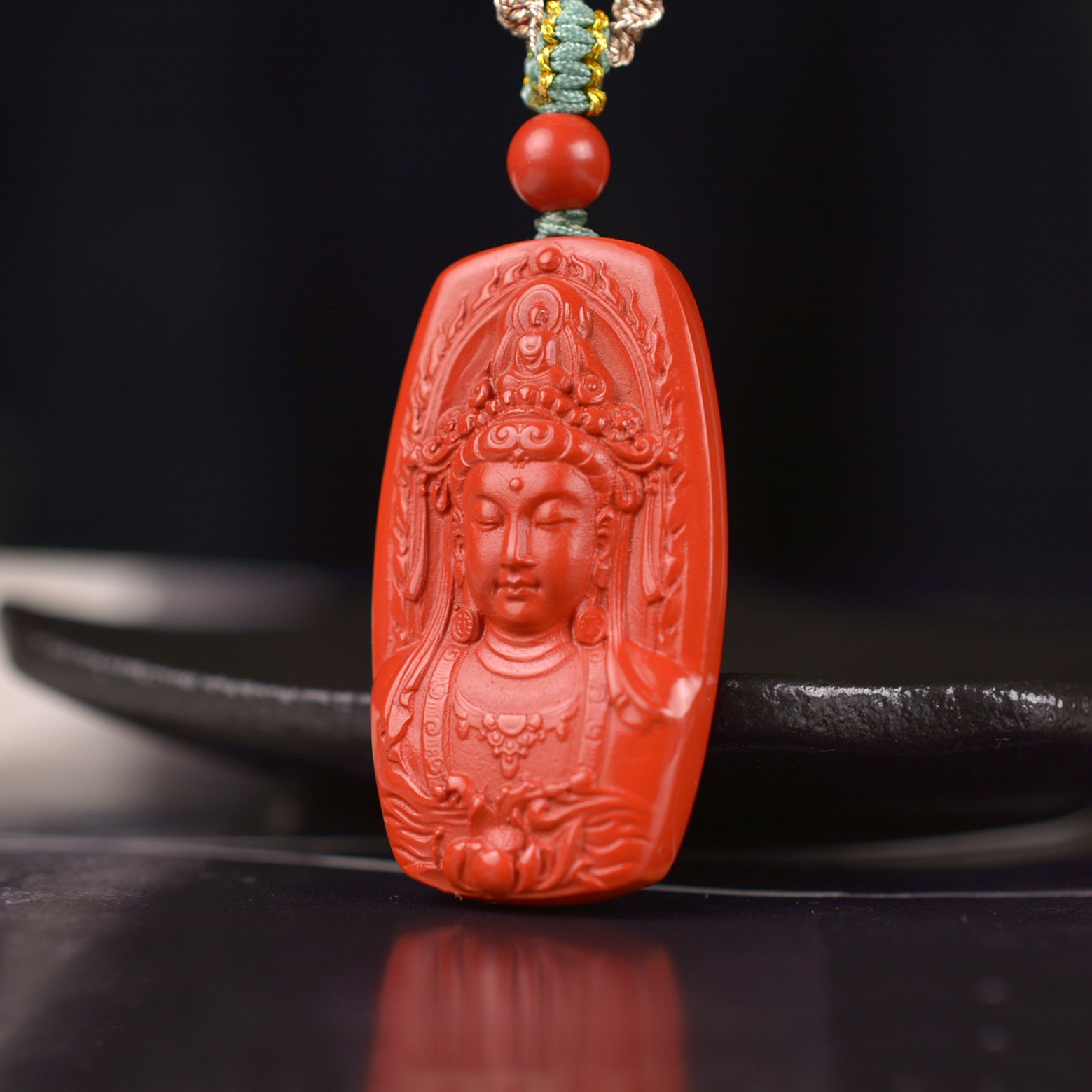 首页> 配饰> 天然原矿红朱砂观音男女本命年帝王砂菩萨吊坠挂件牌子项链