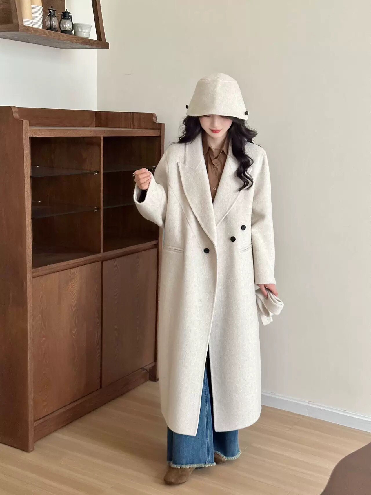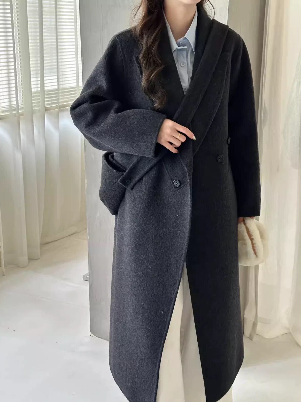 2025秋冬新款双面羊绒大衣女中长款西装领羊毛外套