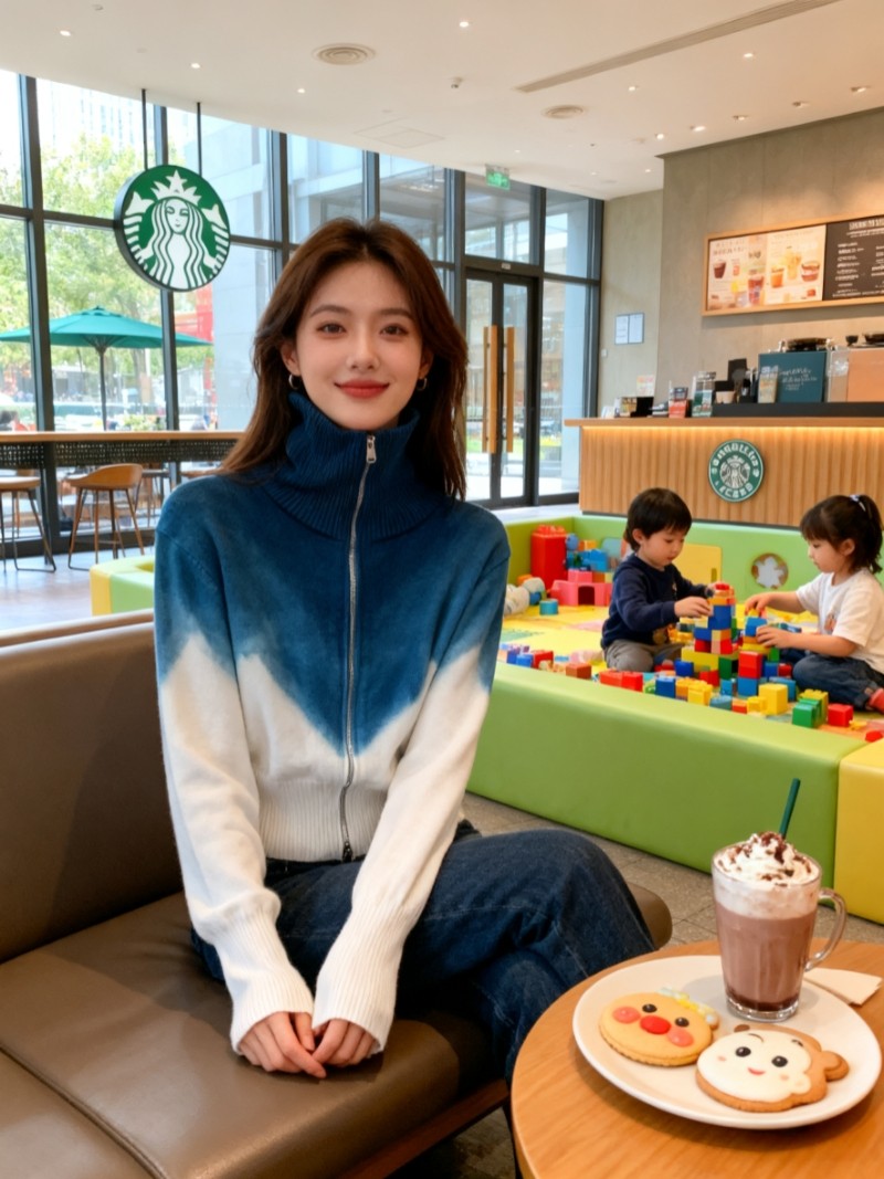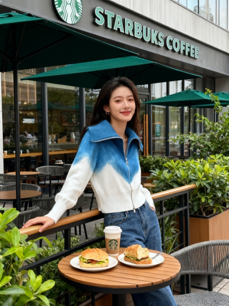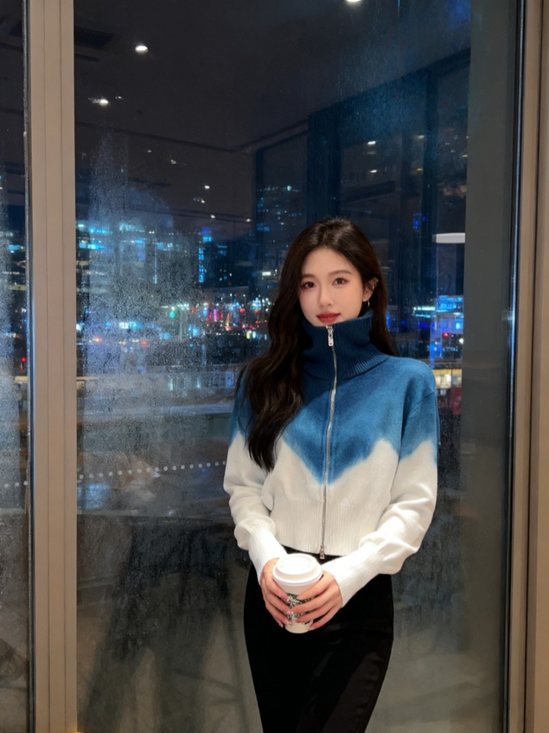 扎染针织开衫女2025秋冬小个子短款高腰上衣百搭高领毛衣外套长袖