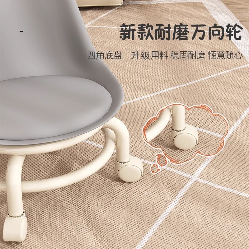 万向轮静音滑轮矮凳换鞋凳带娃神器透明椅多功能儿童旋转皮椅圆凳