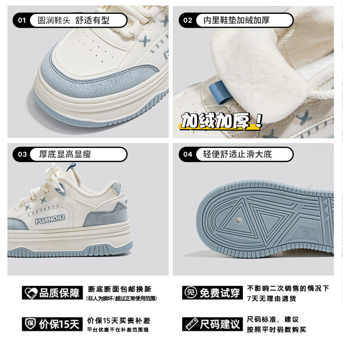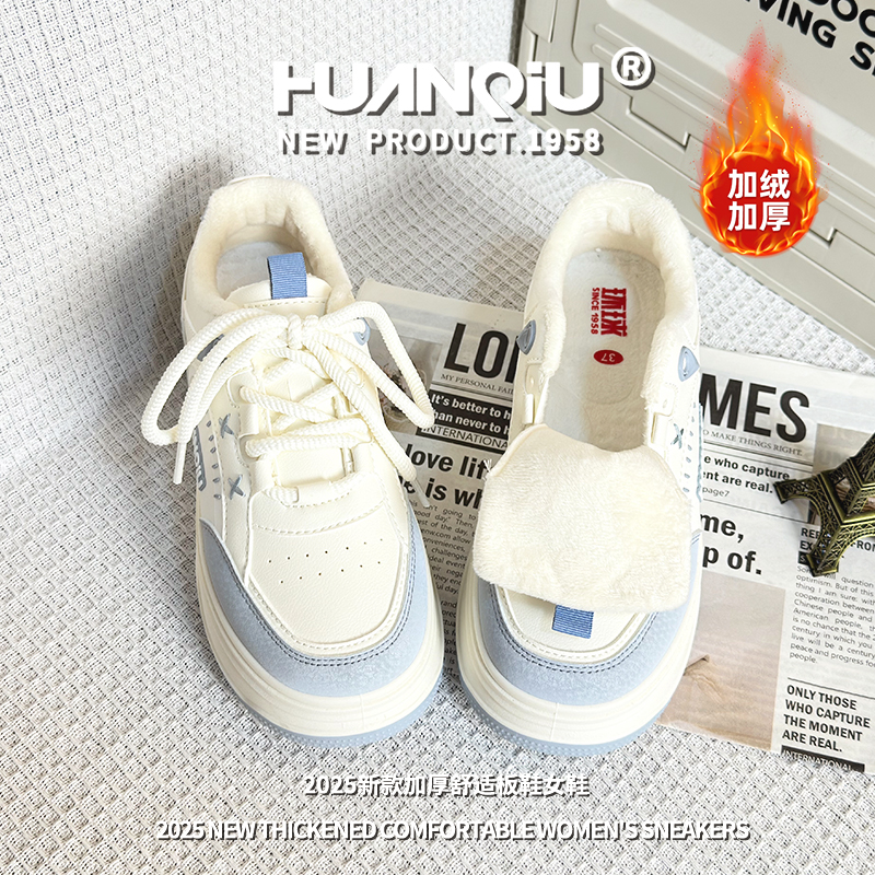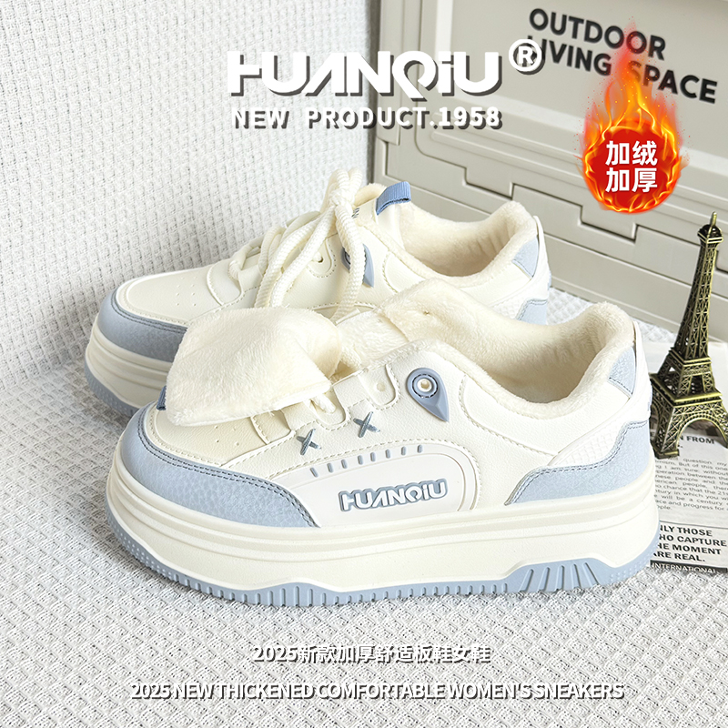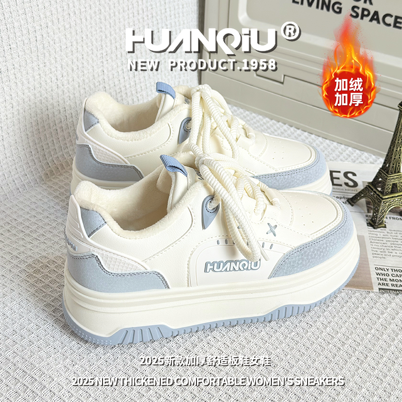 环球加绒加厚休闲小白鞋女2025冬季百搭厚底增高保暖板鞋时尚鞋子