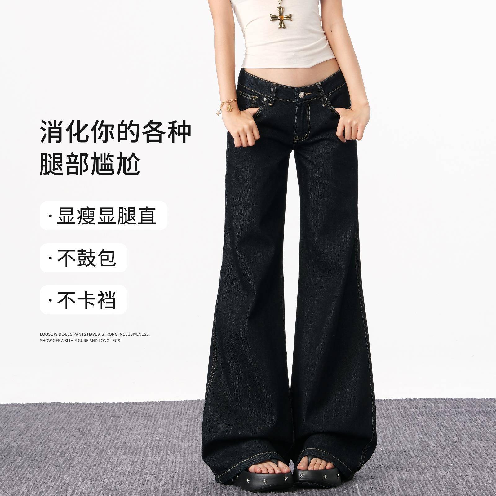 首页> 女装> 原色低腰微喇牛仔裤女夏薄款2025年深蓝色宽松显瘦不贴腿喇叭裤子