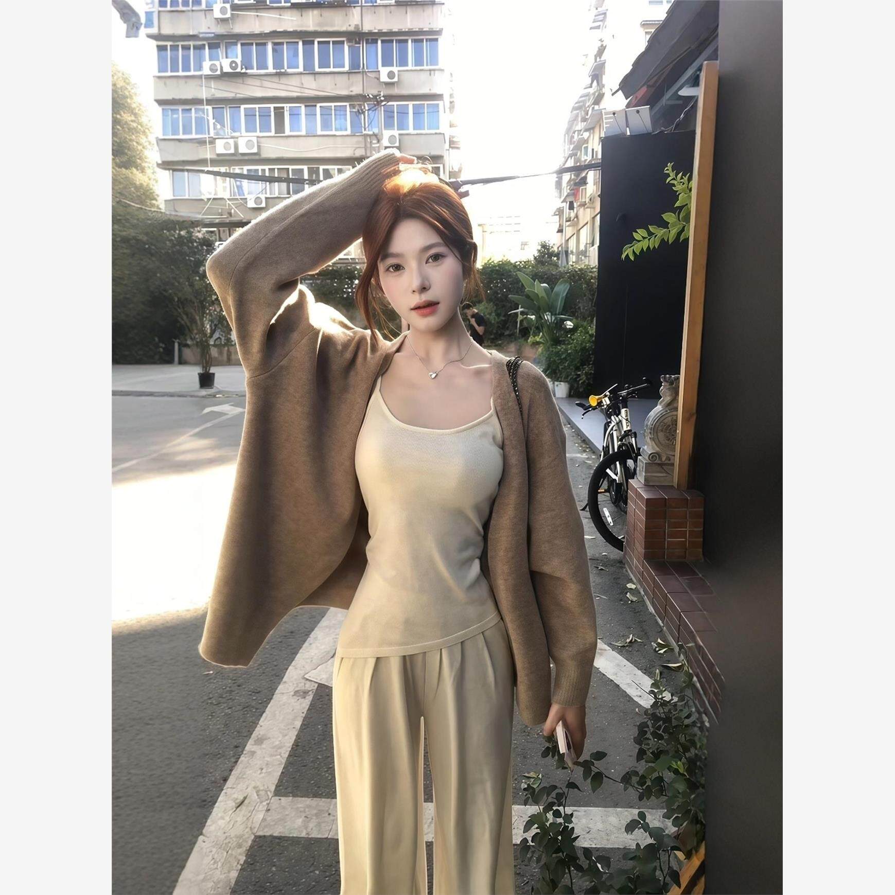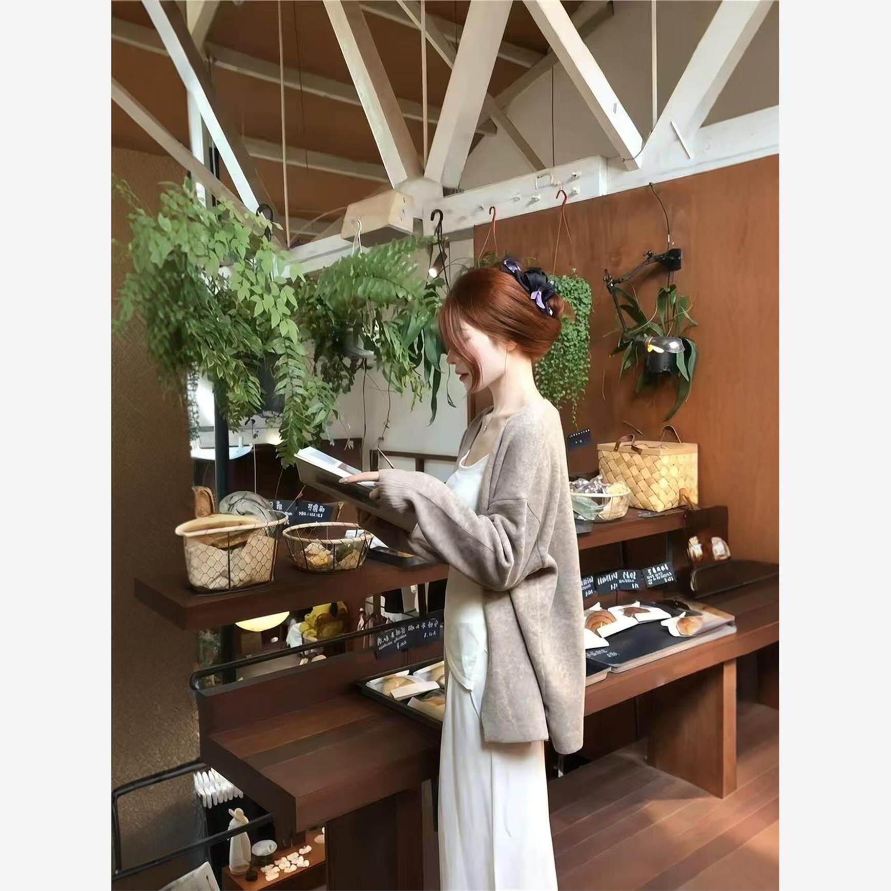 韩系慵懒风针织开衫休闲外套女v领2025新款春秋季宽松小个子上衣