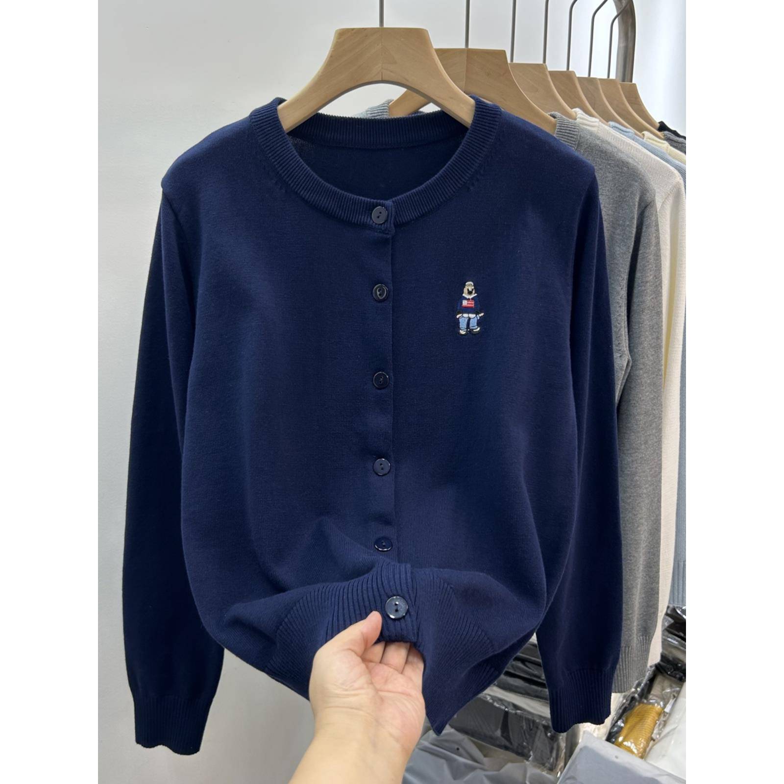 不起球100%纯棉针织衫女开衫2025年春装新款圆领毛衣外套48S精纺