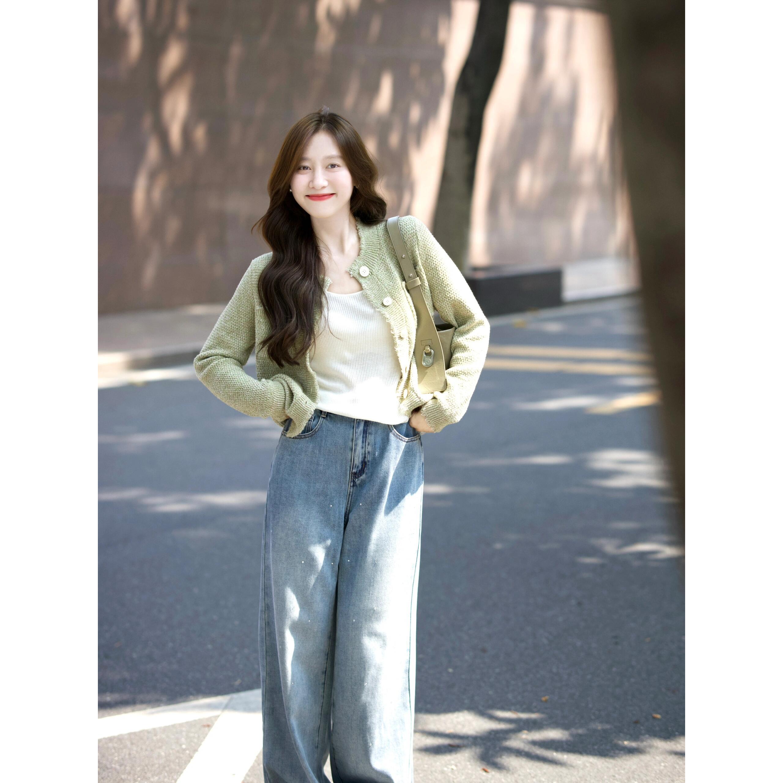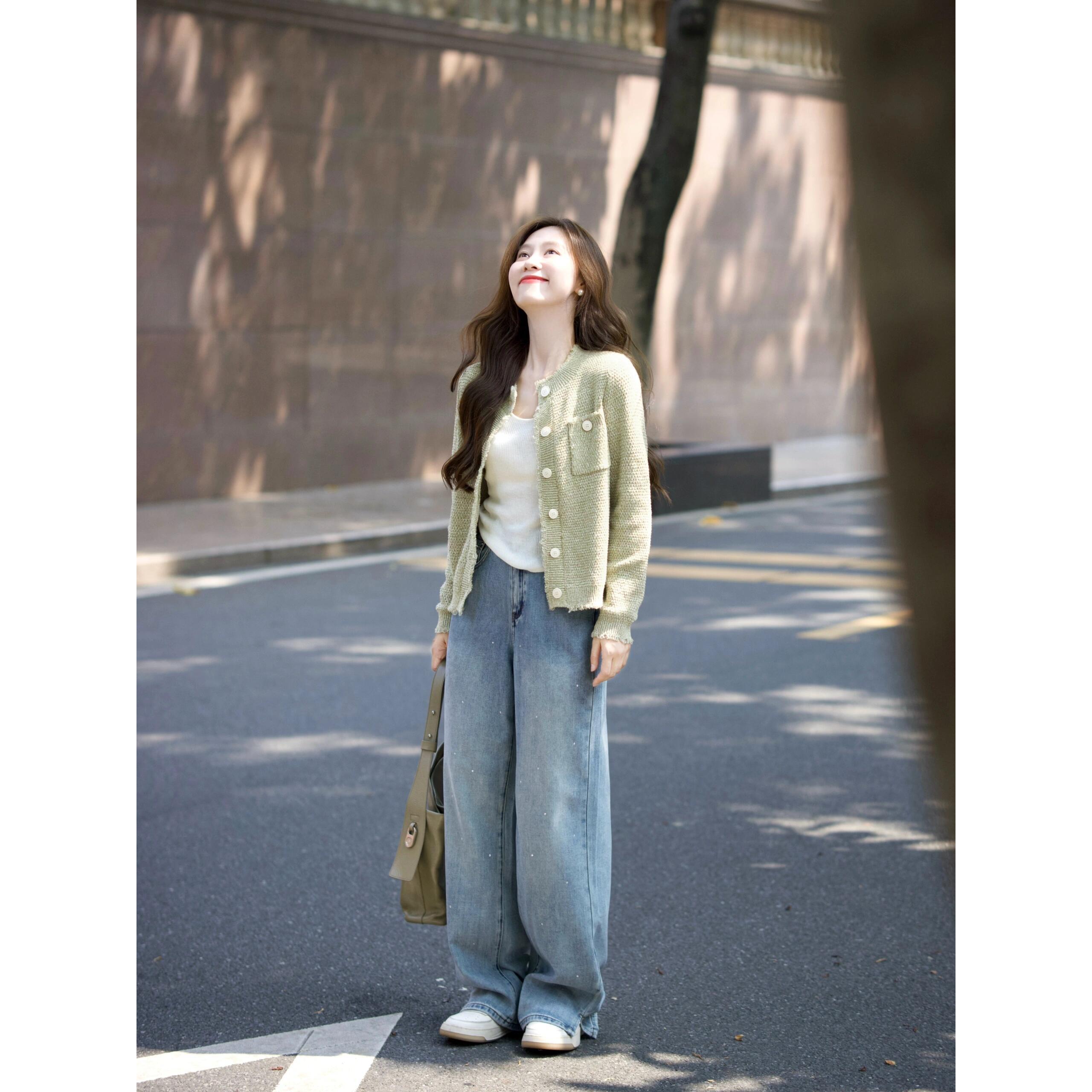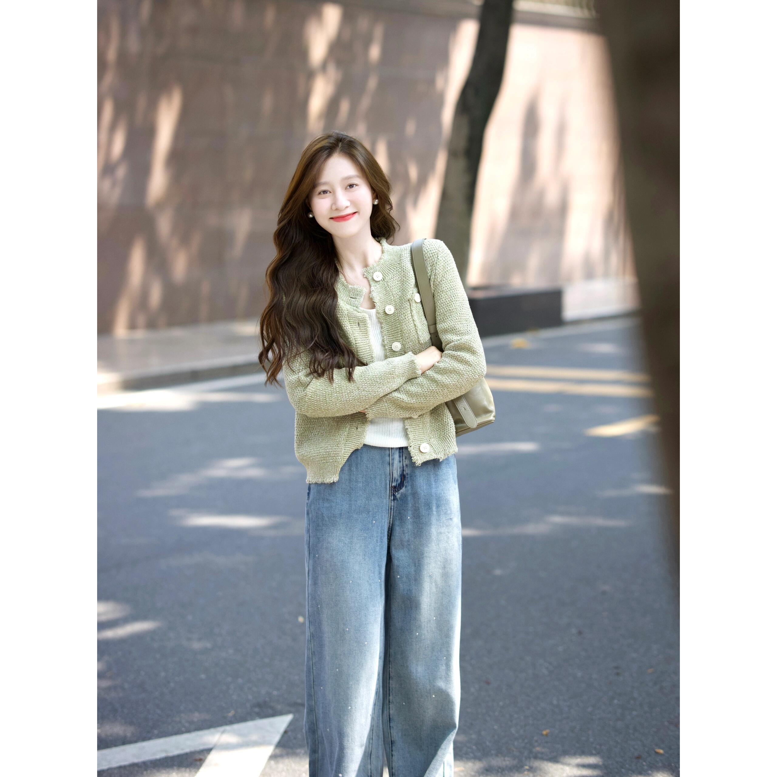 秋装搭配一整套大码微胖mm显瘦盐系穿搭小香风开衫外套时尚套装女