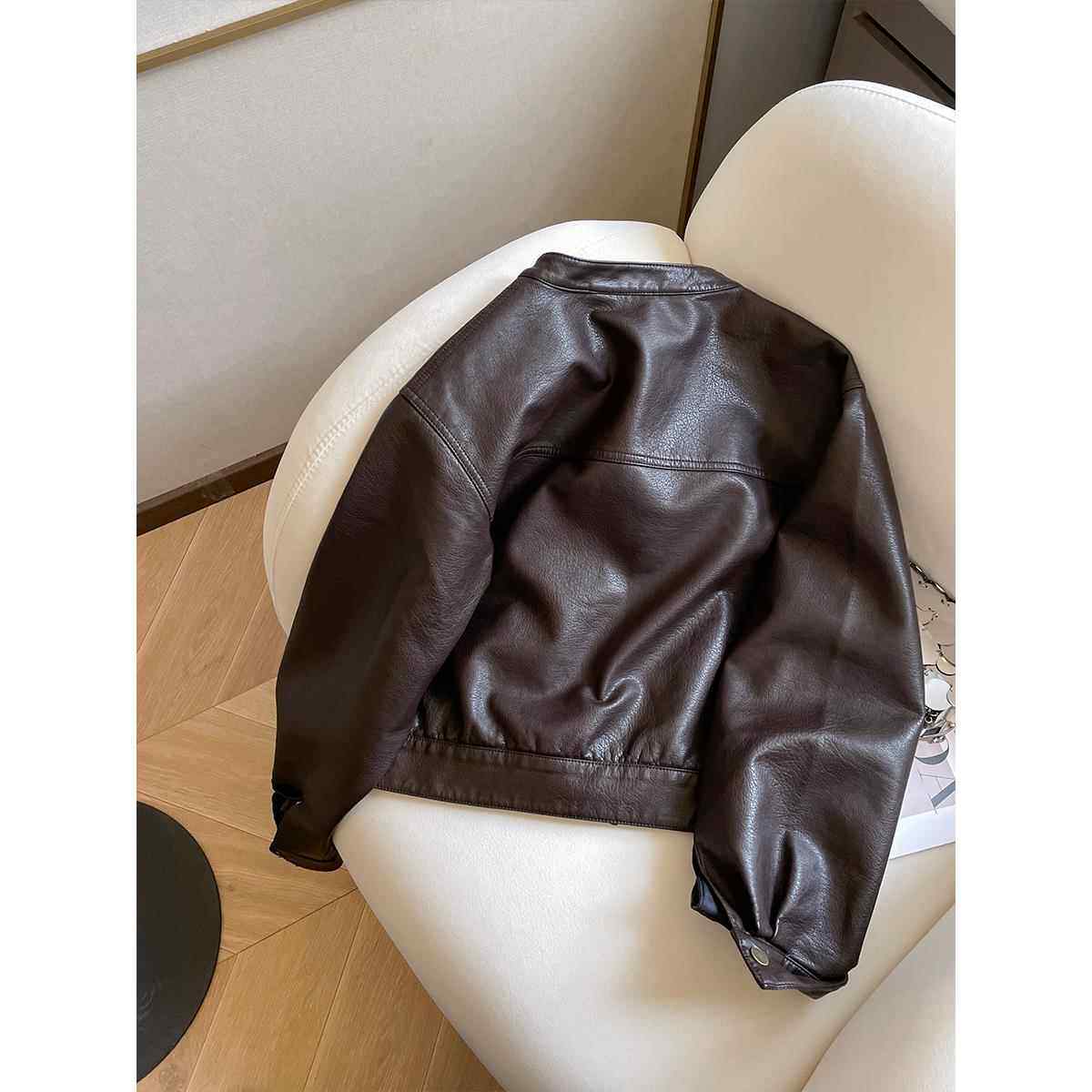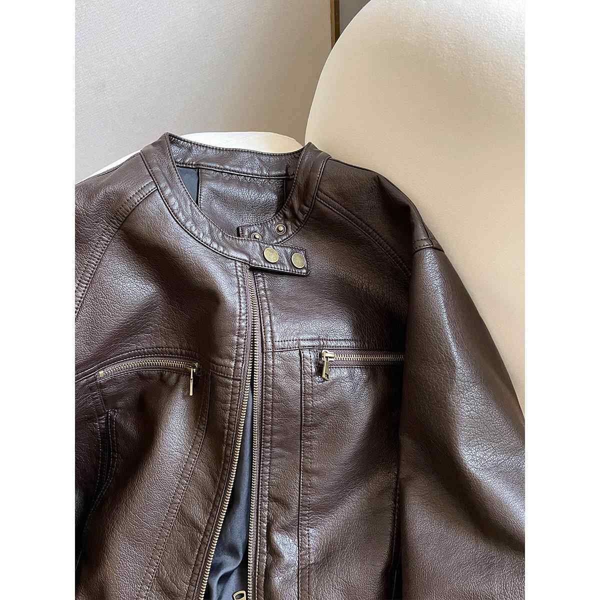 小C家 美拉德风棕色皮衣外套女2025新款秋季小个子立领短款皮夹克