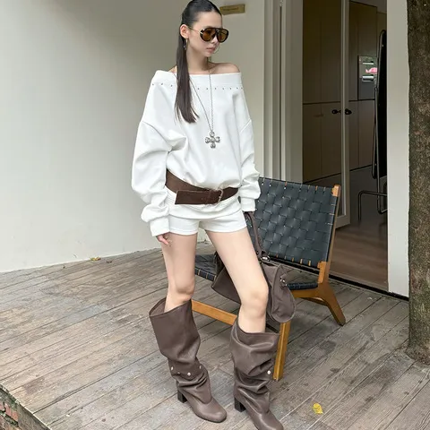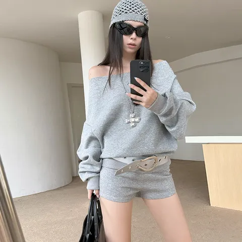 时髦25K497包臀修身休闲短裤低腰街头铆钉热裤修身高弹MMFISH骑行