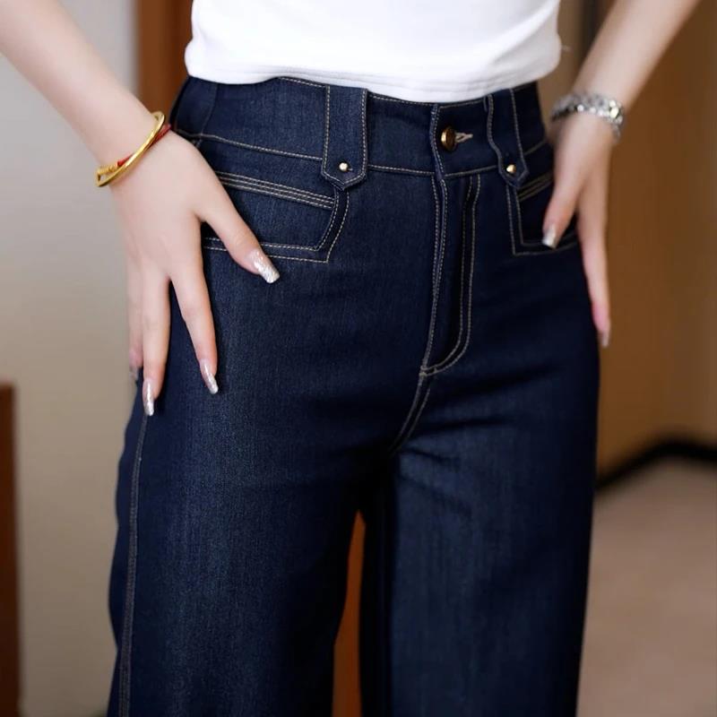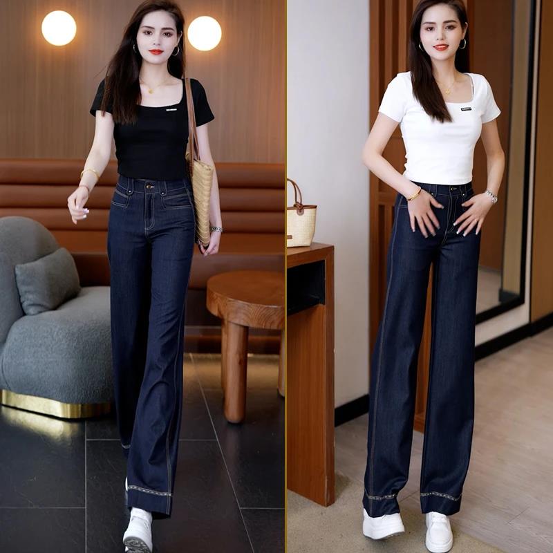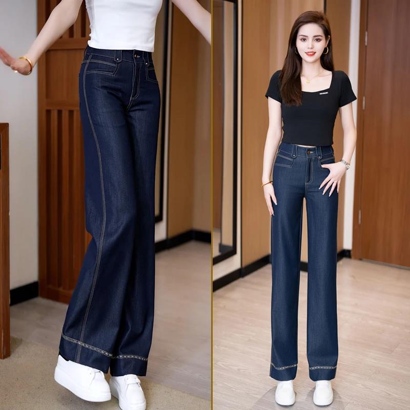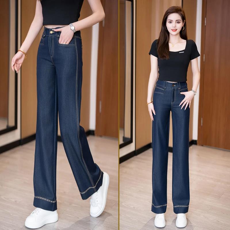 2025年春夏季新款窄版天丝直筒牛仔裤女宽松高腰垂感小个子阔腿裤