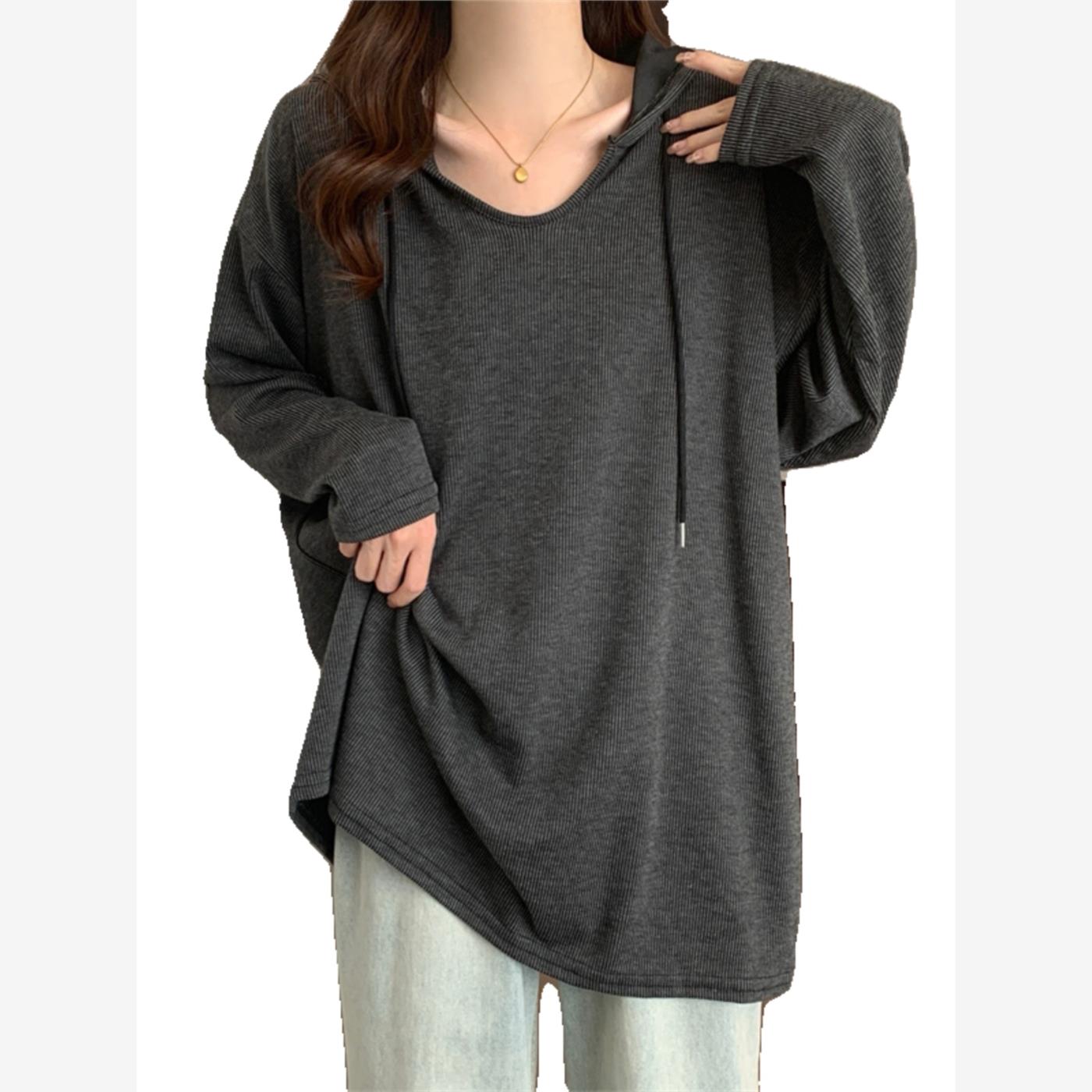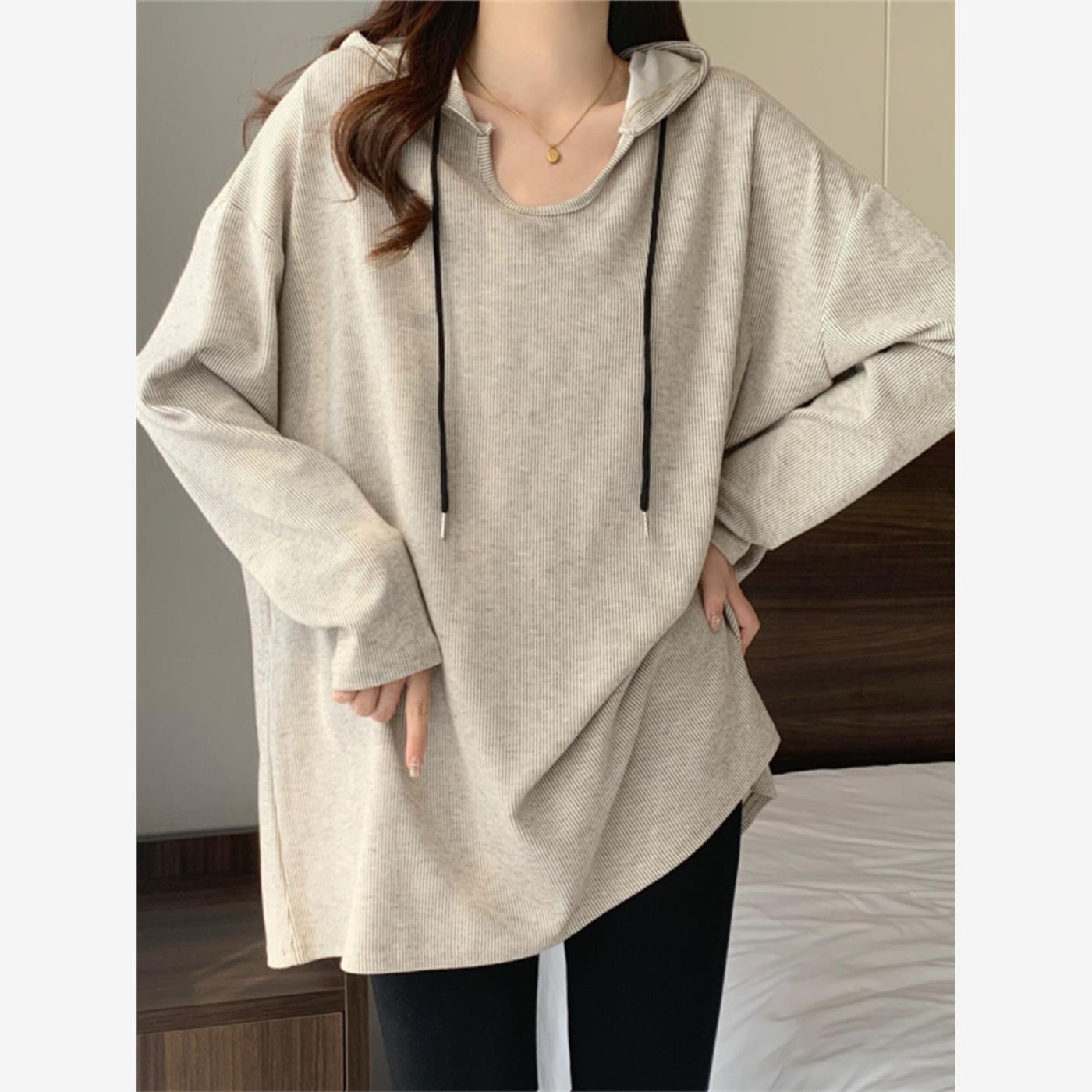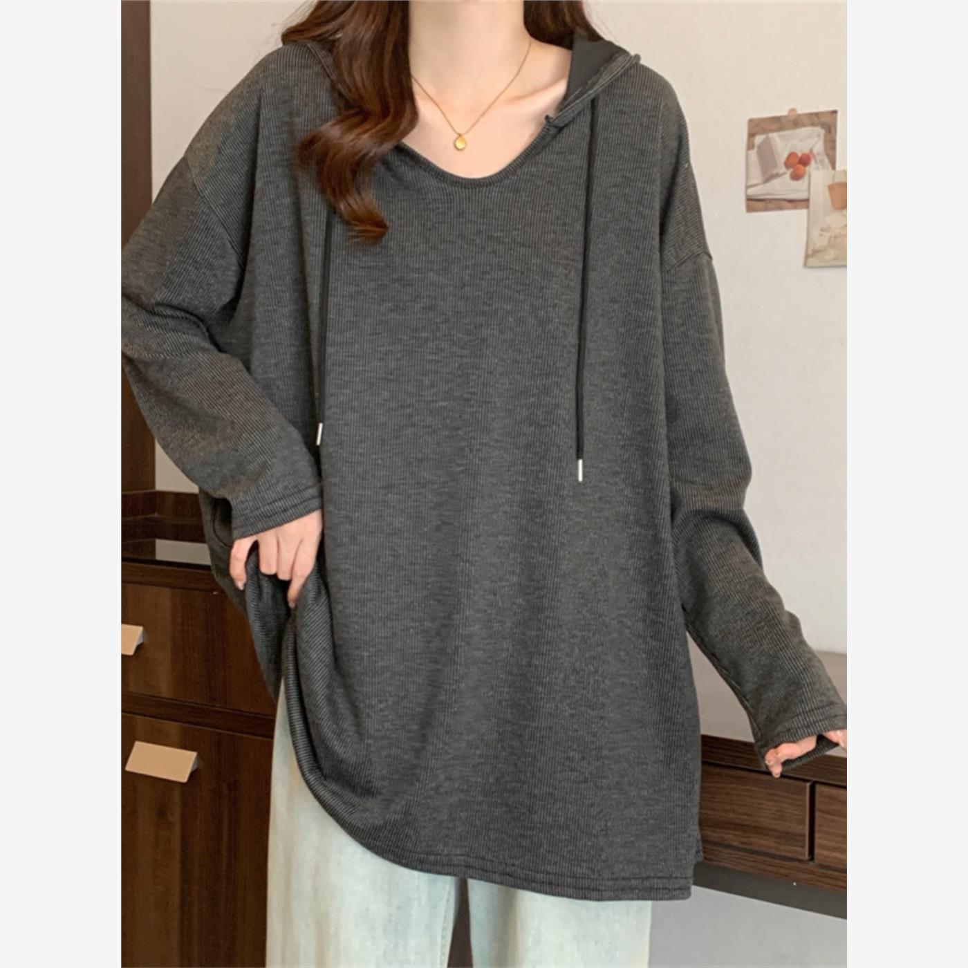 加码女性肥胖毫米宽松修身长袖连帽运动衫2025年新的春秋季中长度