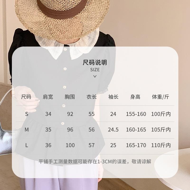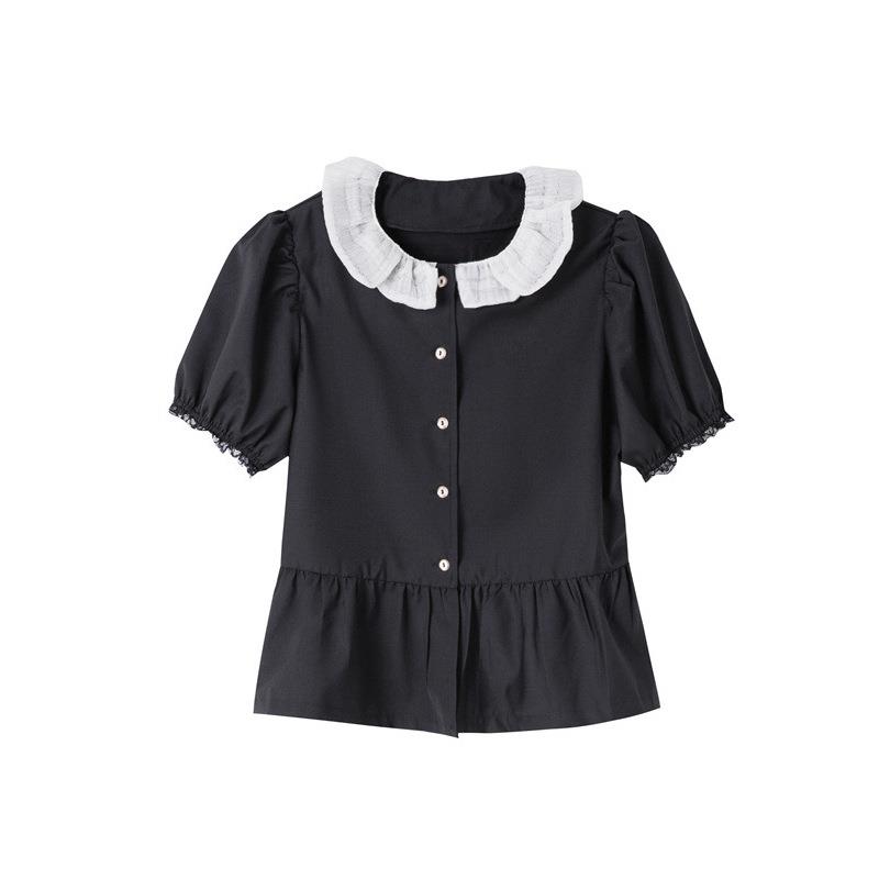 [本初]法式甜美短袖衬衫女夏季减龄娃娃领短款上衣清新蕾丝