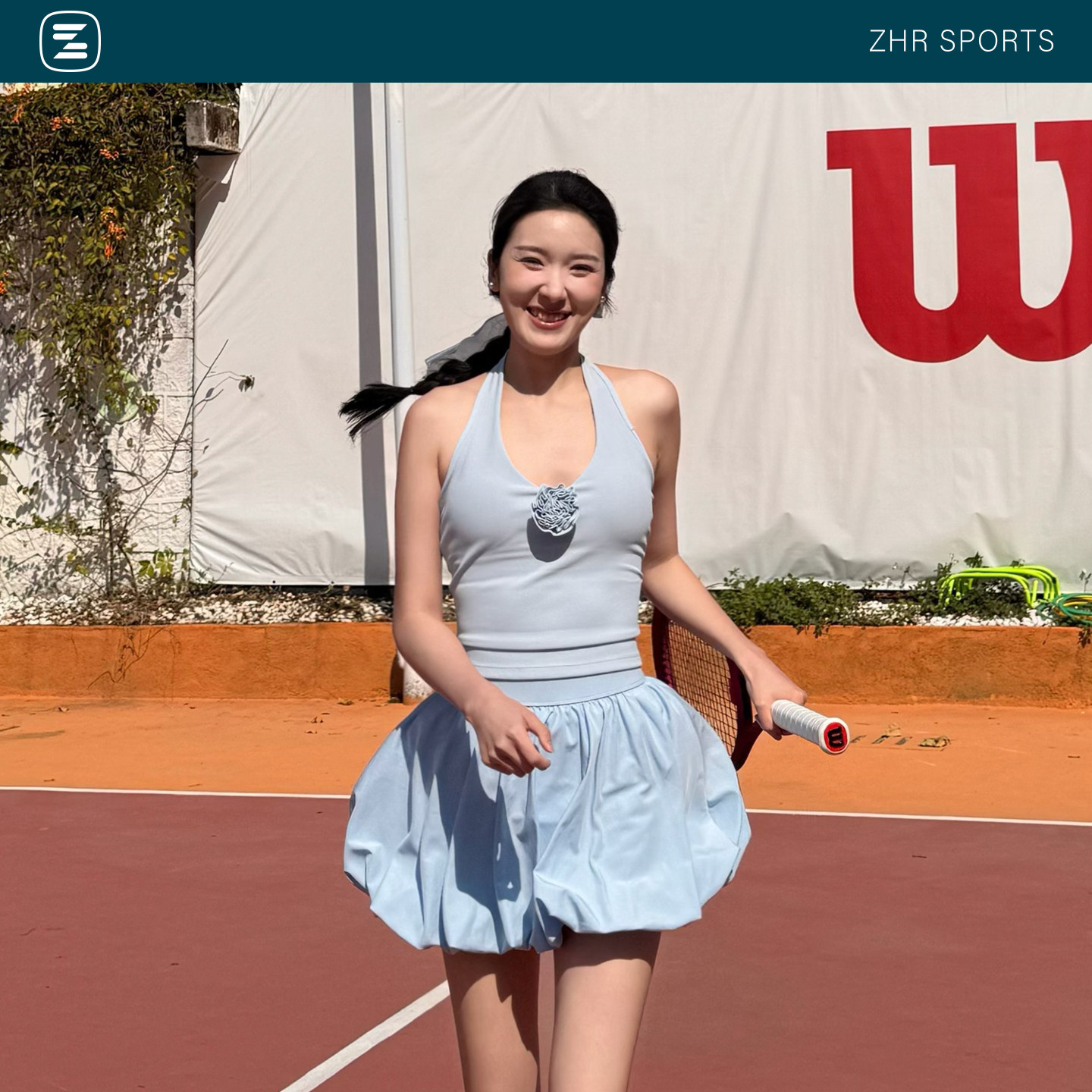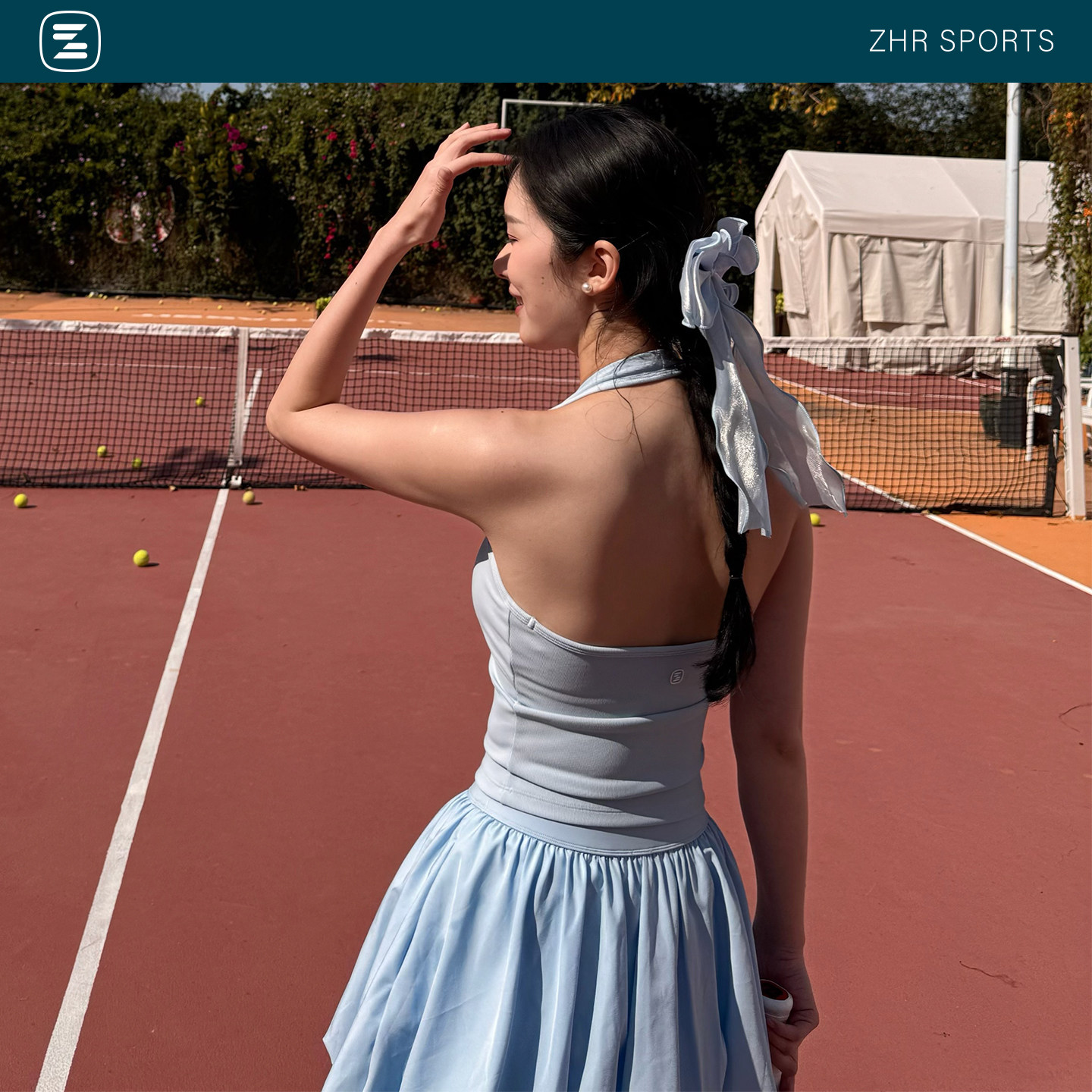 ZHRSPORTS网球服女裸感美背运动背心两件套网球裙健身高尔夫短裙