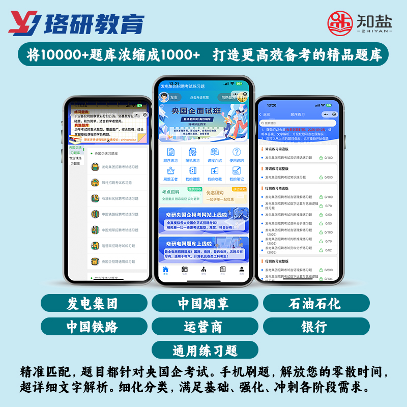 2026珞研央国企招聘考试小程序笔试题库发电集团中国烟草石油石化运营商中国铁路银行考试刷题基础强化冲刺刷题
