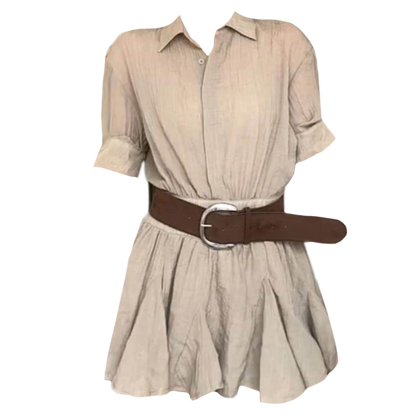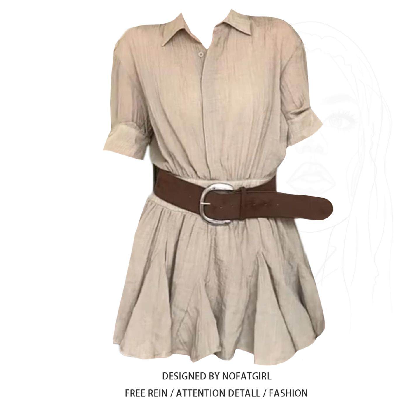 大尺码胖妹妹高级感法式翻领短袖衬衫洋装女夏季气质收腰百褶短裙