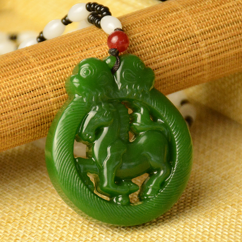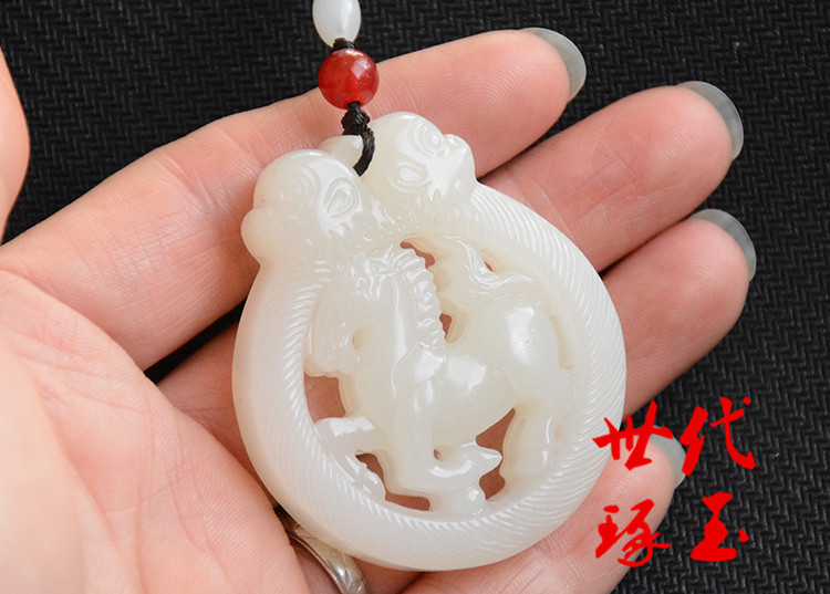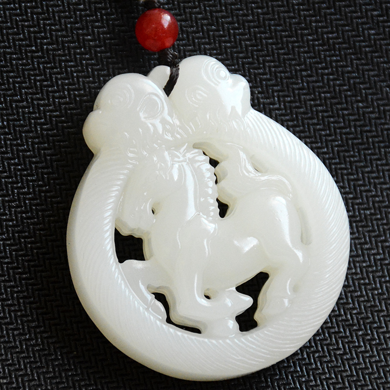 黄龙玉马上封侯挂件和田白玉生肖猴玉坠碧玉镂空马吊坠男女玉佩牌